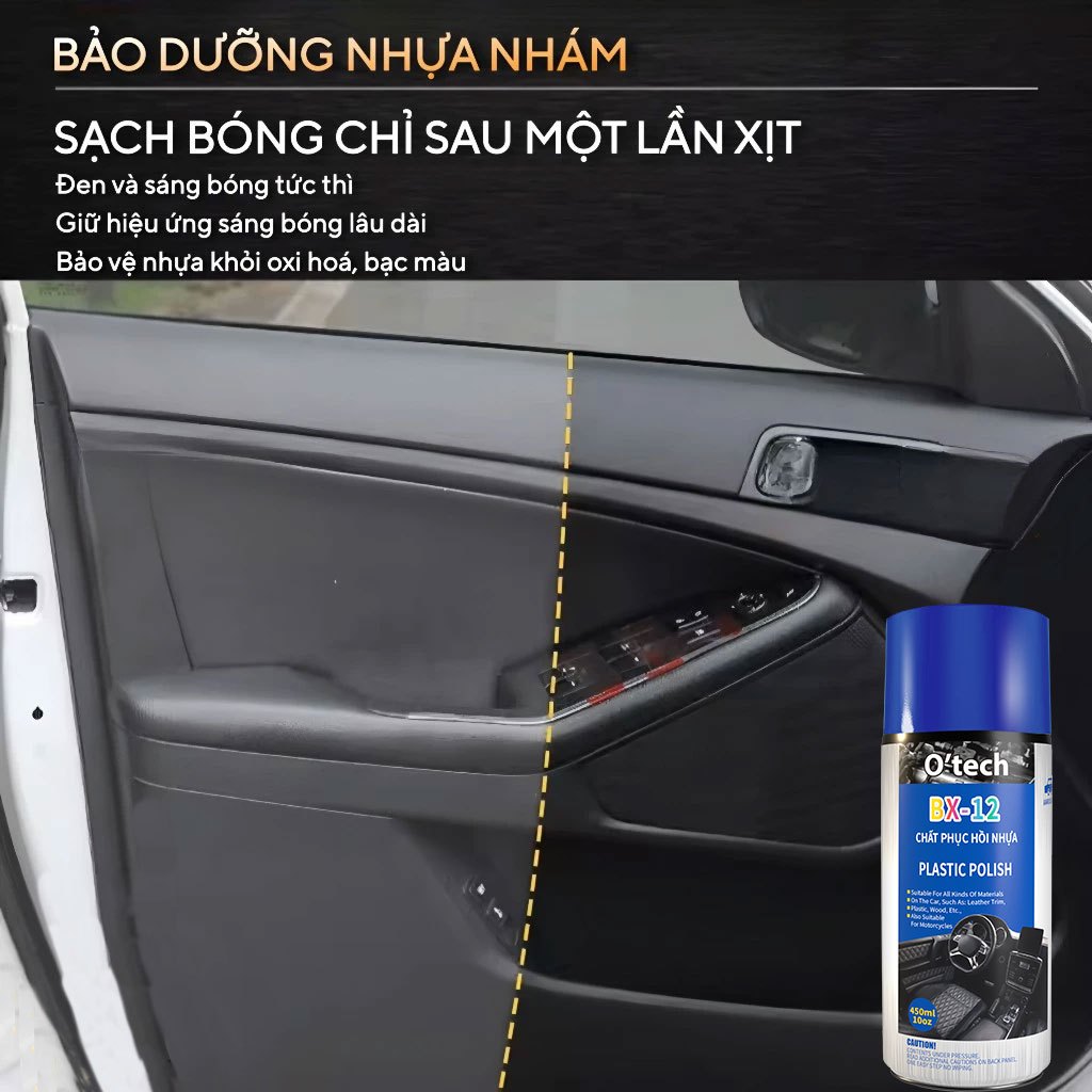 Phục hồi nhựa nhám O'TECH BX-12 (450ml) Plastic Polish - Xịt dưỡng bóng và tái tạo bề mặt nhựa nhám