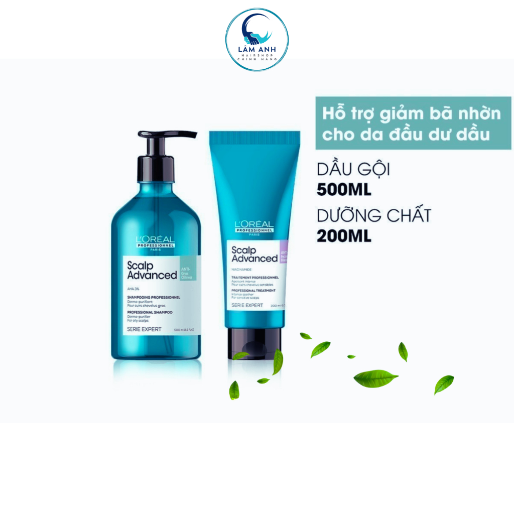 Dầu Gội, Xả L'Oréal Scalp Advanced Anti-Gras Oiliness Giảm Nhờn Cấp Ẩm Giảm Bết Cho Da Đầu Dầu