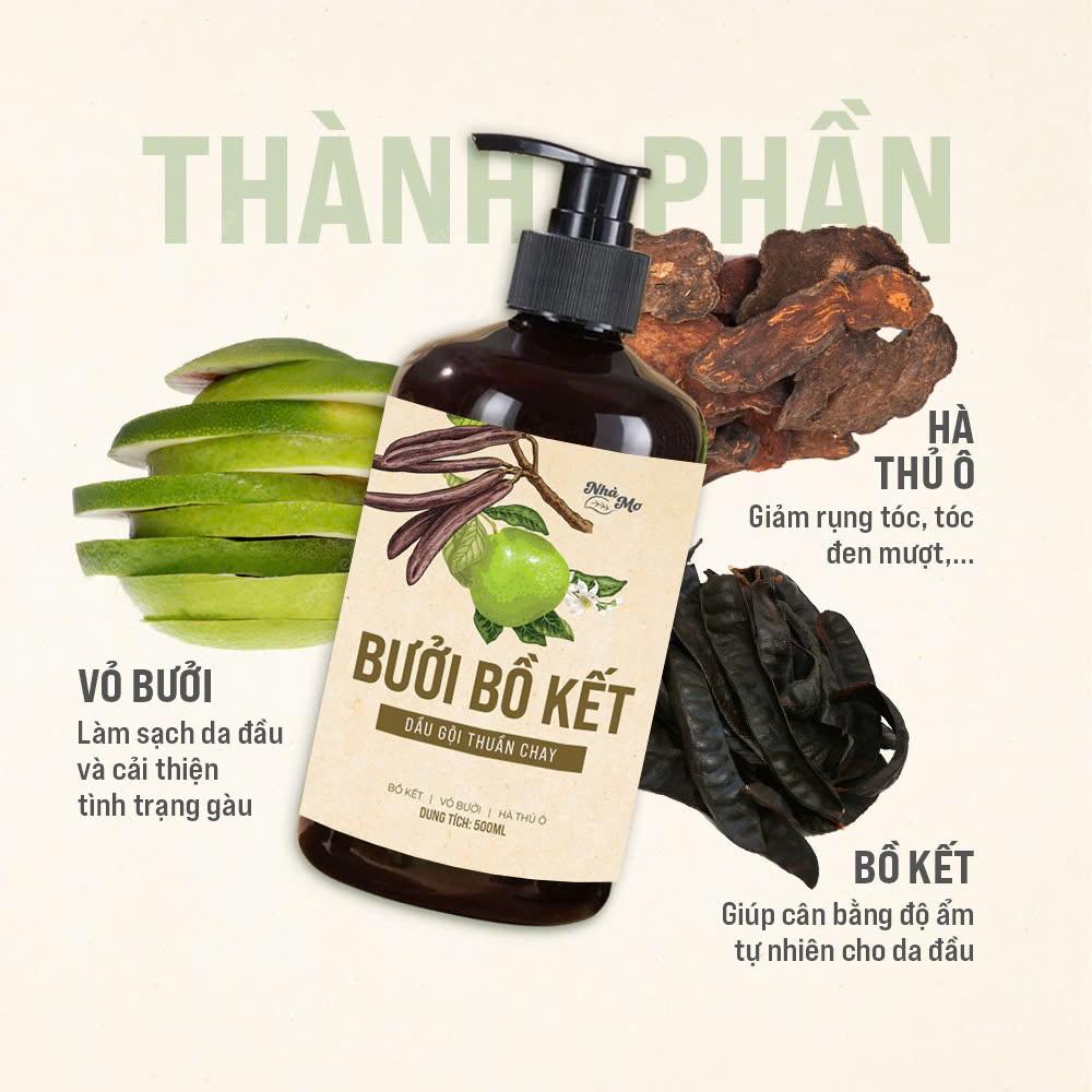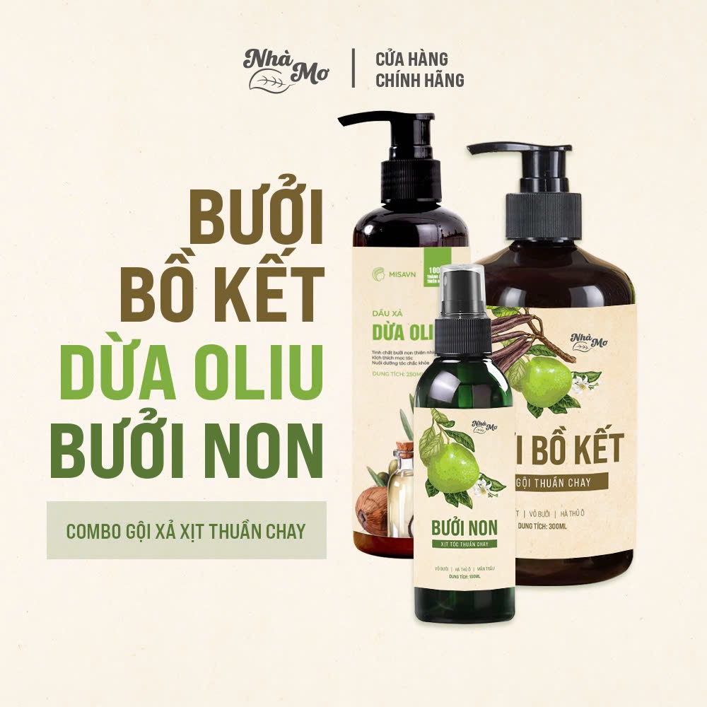 [Bộ 3 Gội Xả Dưỡng] Nhà Mơ Combo thảo dược Bưởi - Bồ kết thuần chay, kích mọc tóc, giảm gãy rụng
