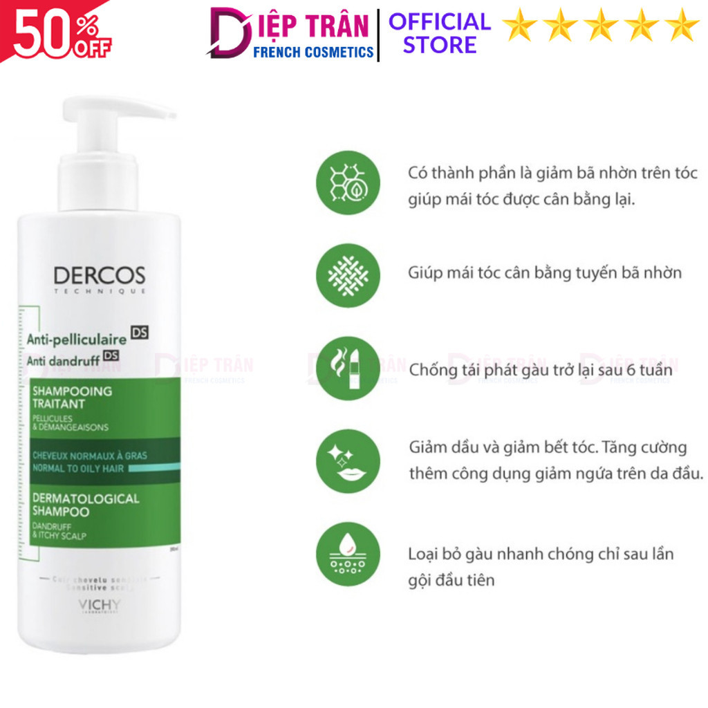 Dầu gội sạch gàu cho da đầu dầu, ngứa Vichy Dercos Anti Dandruff 390ml - SKU184