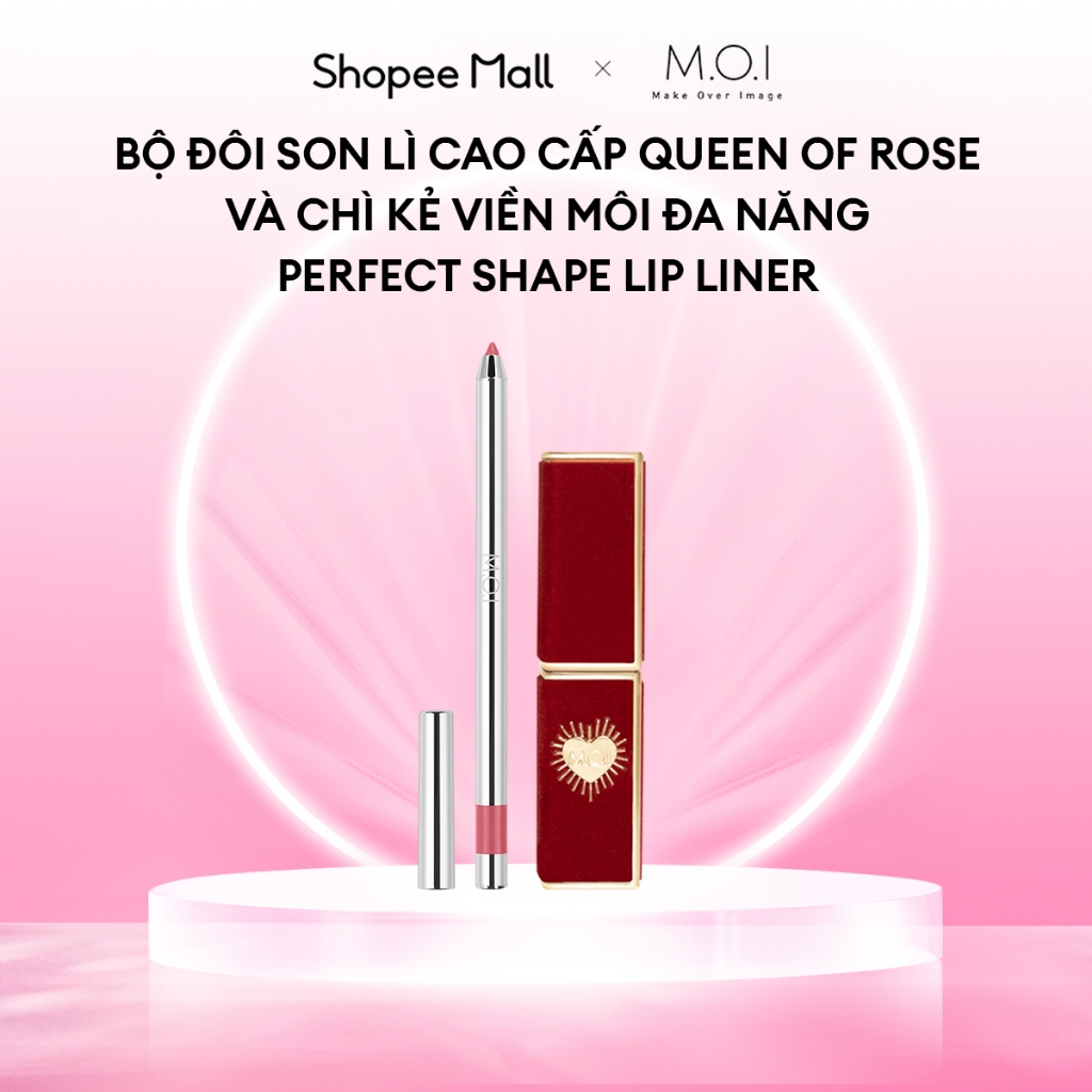 Bộ đôi Son thỏi cao cấp MOI Queen Of Rose và Chì kẻ viền môi đa năng Perfect Shape Lip Liner