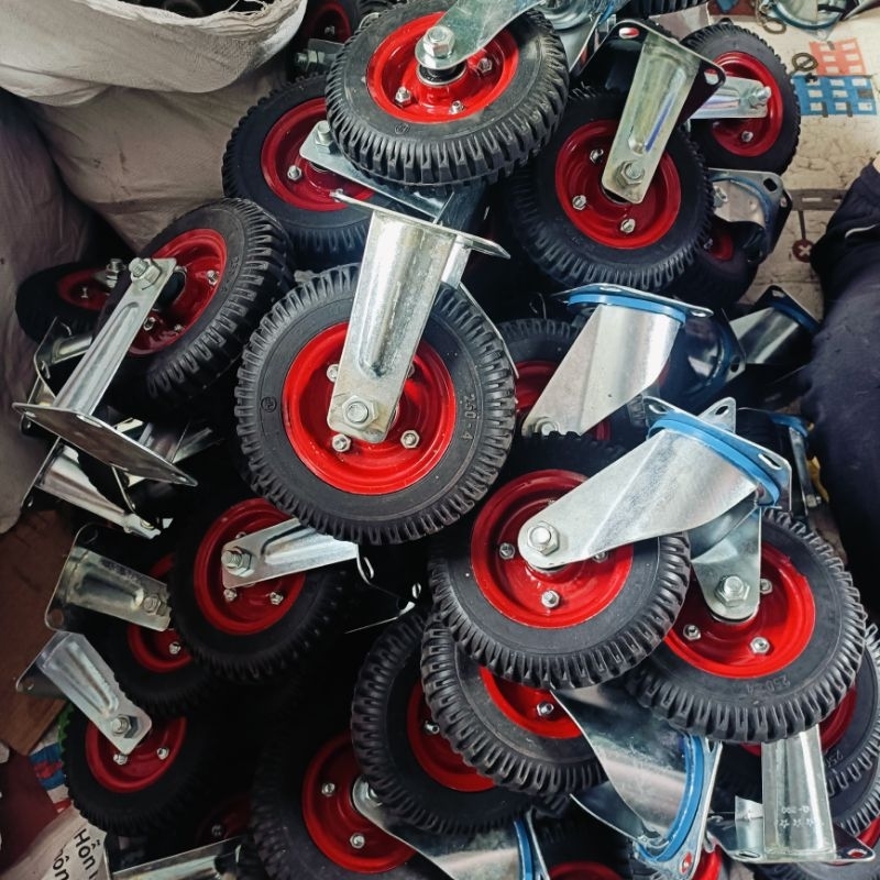 Bánh Xe Cao Su Mâm Đỏ Đường Kính 20cm Cho Xe Đẩy Hàng, Xe Bánh Mì, Xe Mô Hình (Giá 1 Chiếc)