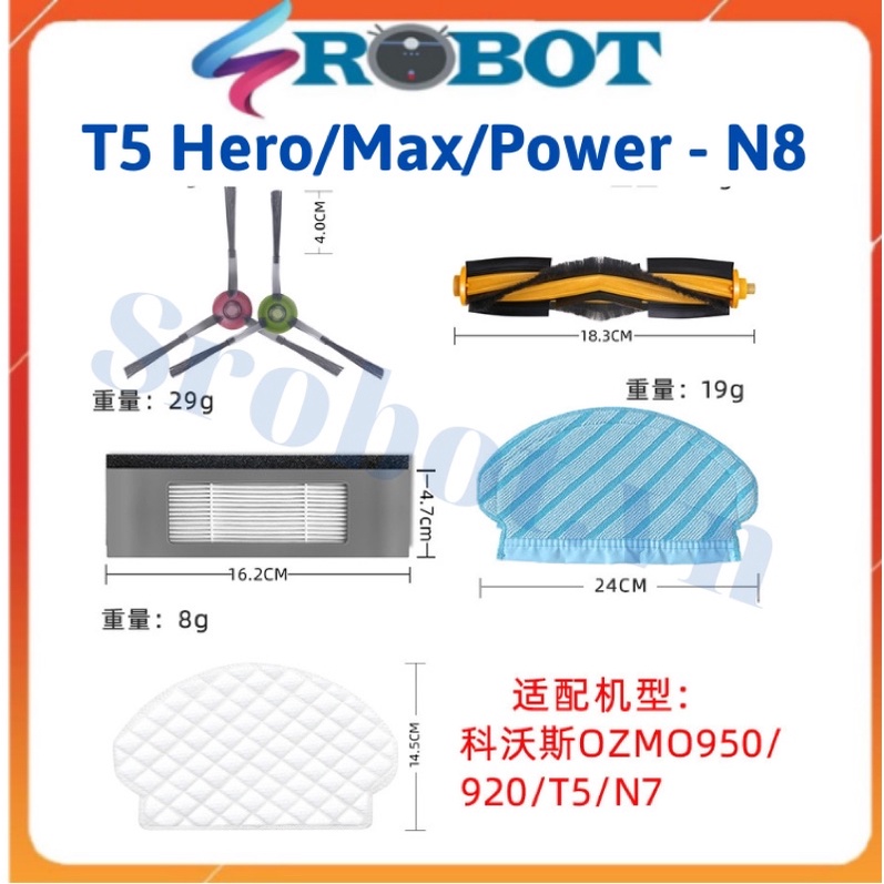Phụ kiện thay thế cho Robot T5 Max, T5 Hero, Ozmo 950, T5 Pro, T5 Neo, Ozmo 920 Phụ kiện khăn, giẻ, chổi cạnh, chổi ch
