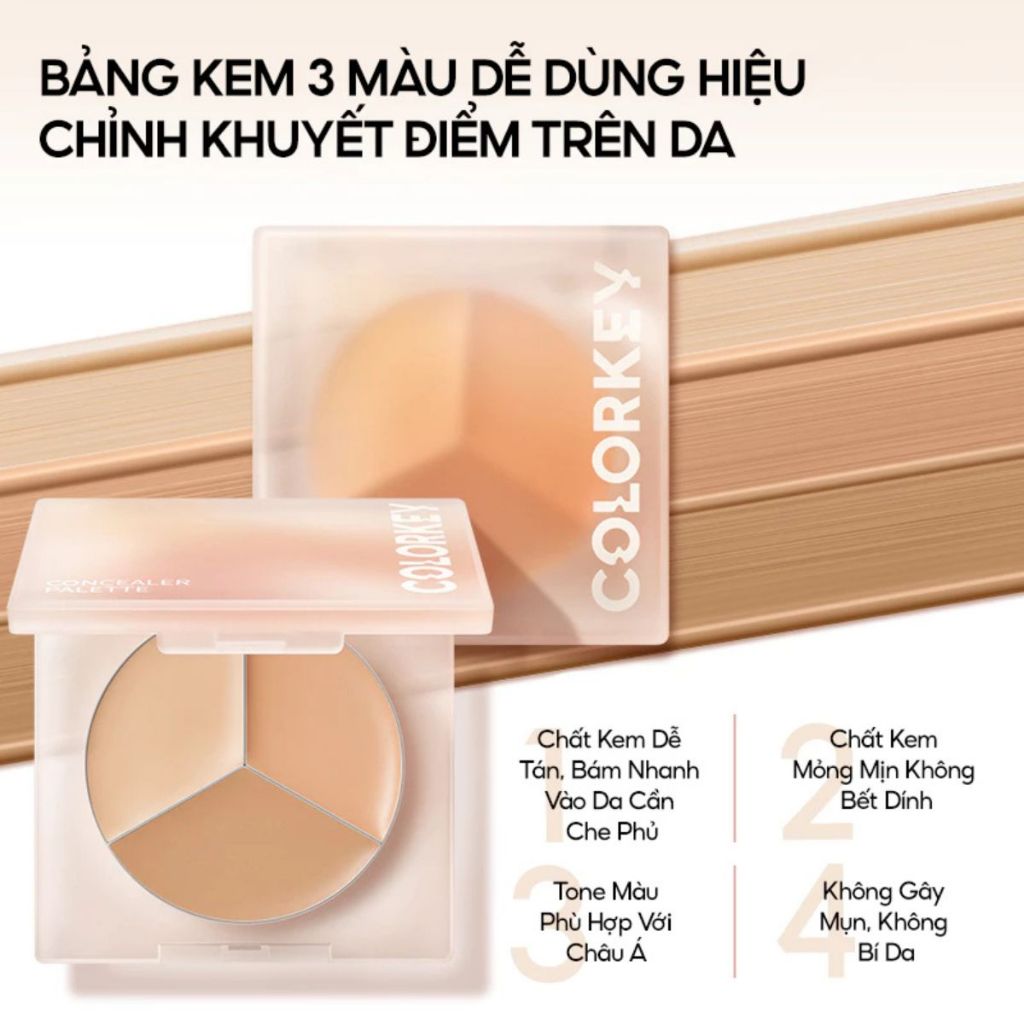 Bảng Kem Che Khuyết Điểm COLORKEY 3 Màu Mỏng Mịn Tự Nhiên Lâu Trôi Concealer Palette 3.9g