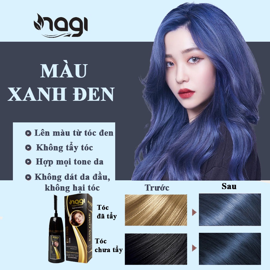 Dầu gội nhuộm tóc màu Xanh đen Nagi BLUE AND BLACK 13 chiết xuất từ thiên nhiên chai 400ml [Tặng kem ủ tóc Nagi]