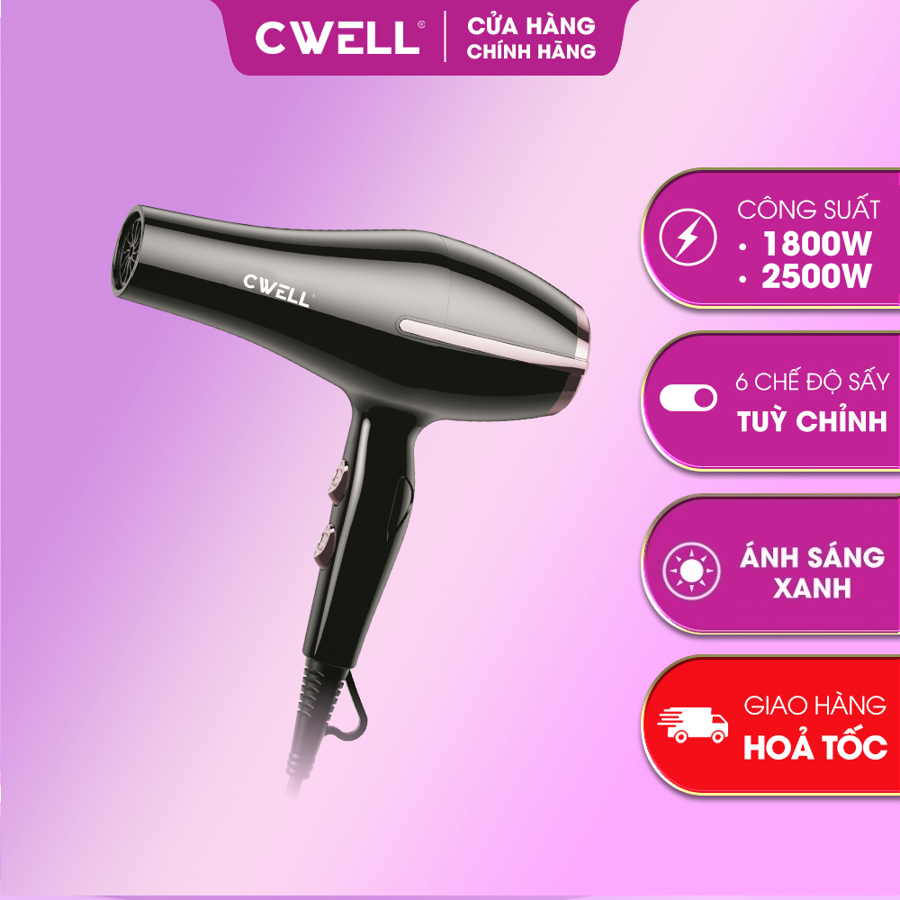 Máy sấy tóc CWELL C03HD công suất lớn 1800W-2500W, 6 chế độ sấy kép, ánh sáng xanh bảo vệ tóc