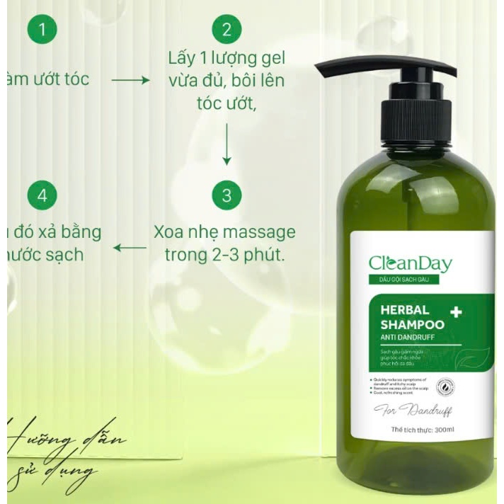 Dầu gội sạch gàu nấm CleanDay Chiết xuất thảo dược tự nhiên chai 300ml