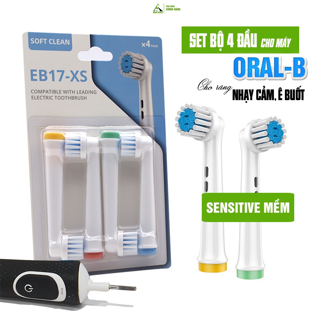 Cho Oral B, EB17XS Full Model, răng nhạy cảm, lông mềm, bộ 4 đầu bàn chải đánh răng điện Minh House