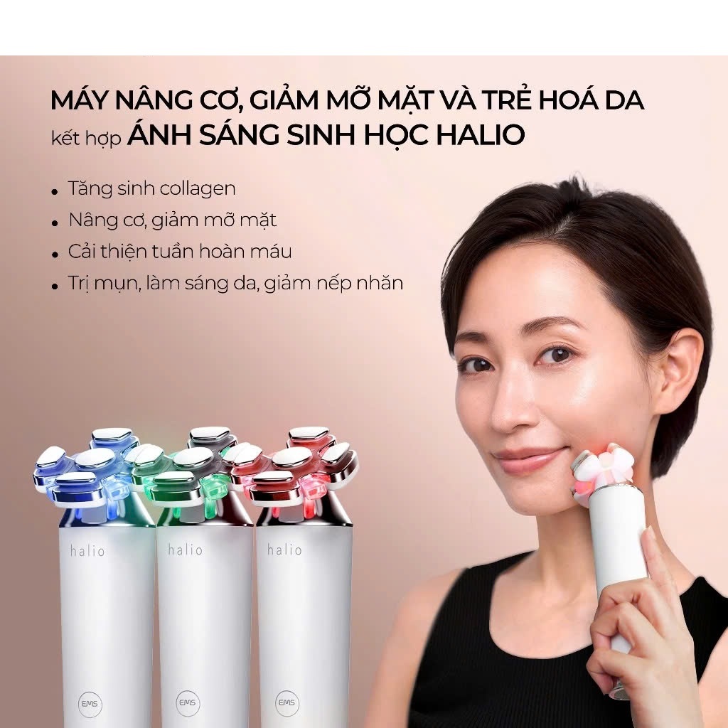 Máy Nâng Cơ, Giảm Mỡ Mặt & Trẻ Hoá Da kết hợp Ánh Sáng Sinh Học Halio RevitaWave Skin Rejuvenator - Hàng Chính Hãng