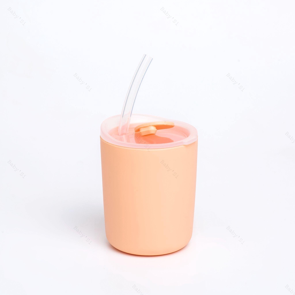 Cốc Uống Nước Silicon Chống Đổ Cho Bé Tập Uống Nước Kèm Ống Hút Và Nắp Đậy Thương Hiệu Baby'Si