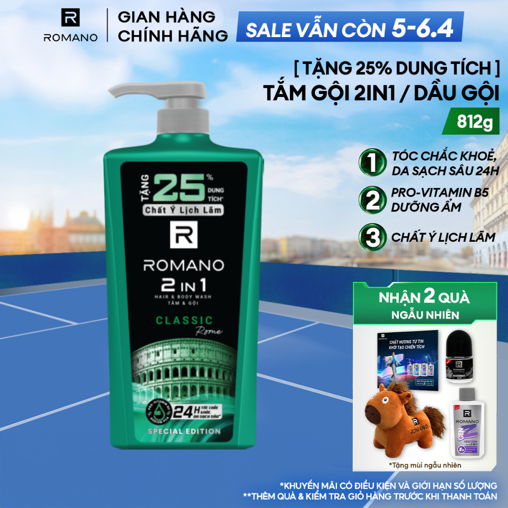 [TẶNG 25% DUNG TÍCH] Tắm gội 2in1 / Dầu gội cho nam Romano hương Nước hoa 650g tăng 25% dung tích