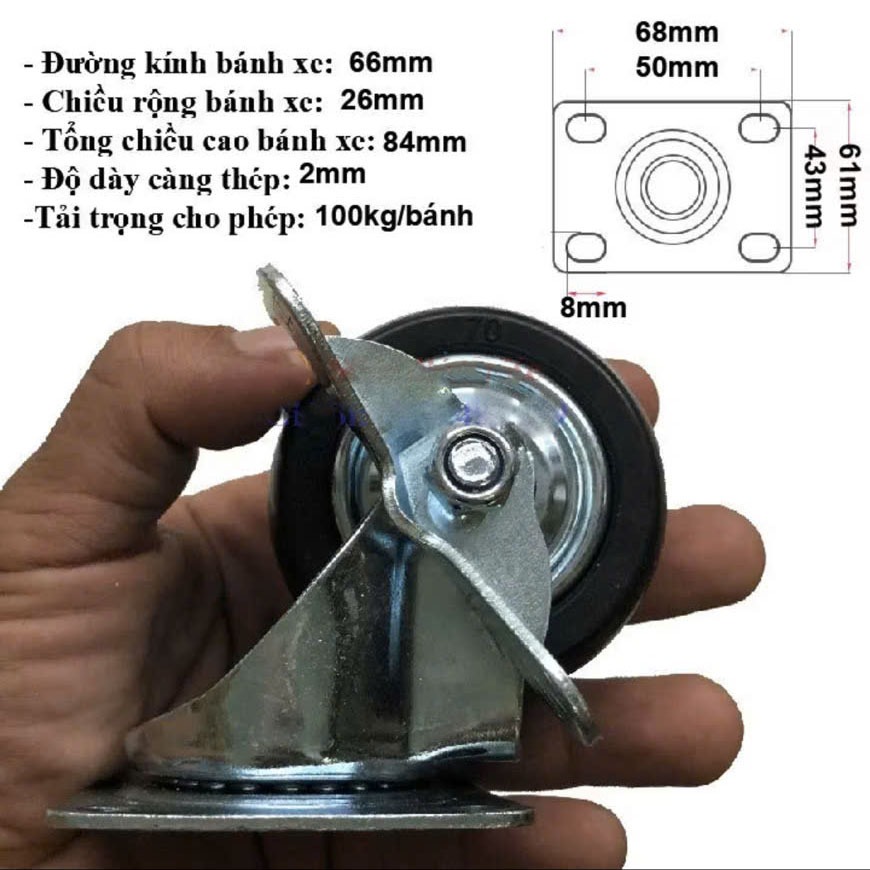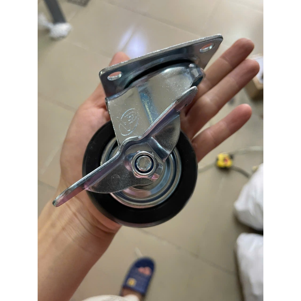 Bánh Xe Đẩy Hàng Xoay 360 Độ Có Chốt Khóa Tải Trọng 100kg Bánh Xe Cao Su 7mm loại 2 Vòng Bi - Bánh Xe Kệ Sắt V Lỗ
