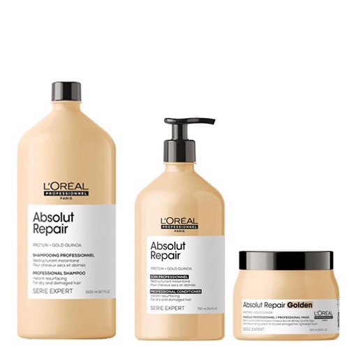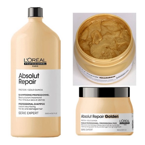Dầu gội + Dầu xả, Mặt nạ nhũ vàng nuôi dưỡng tóc hư tổn, khô sơ L'oreal Professionnel Repair Gold 1500ml I 750ml I 500ml