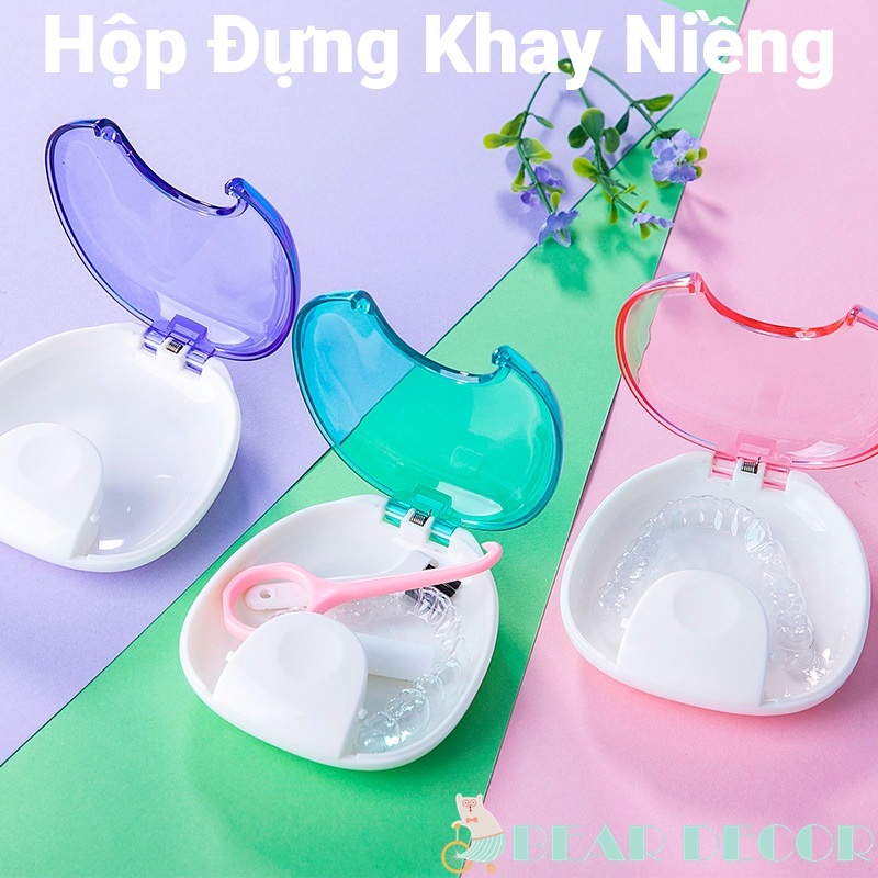 [ 8 Màu ] Hộp Đựng Khay Niềng Răng Invisalign Hình Vỏ Sò - Đựng Hàm Duy Trì Nắp Nhấn Bật Tiện Lợi