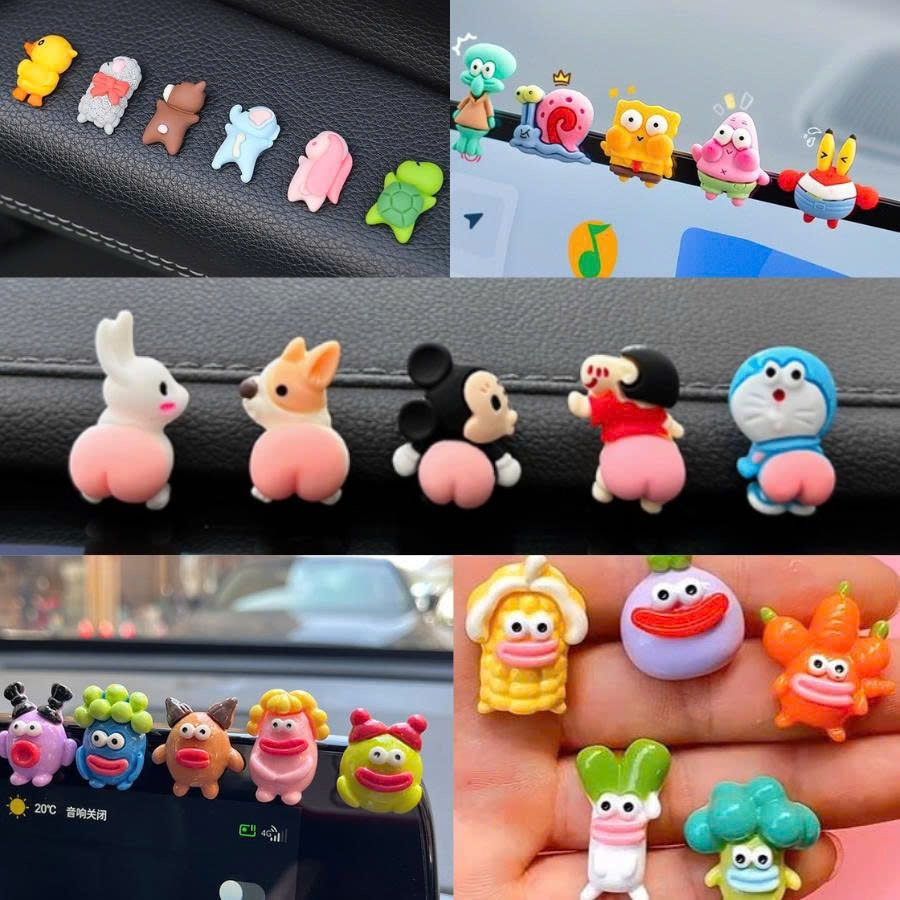 HEMISTORE Bộ mô hình con vật mini cute, trang trí xe máy, nội thất ô tô kèm miếng dán chống trượt