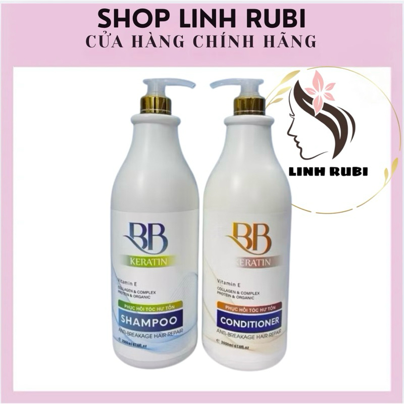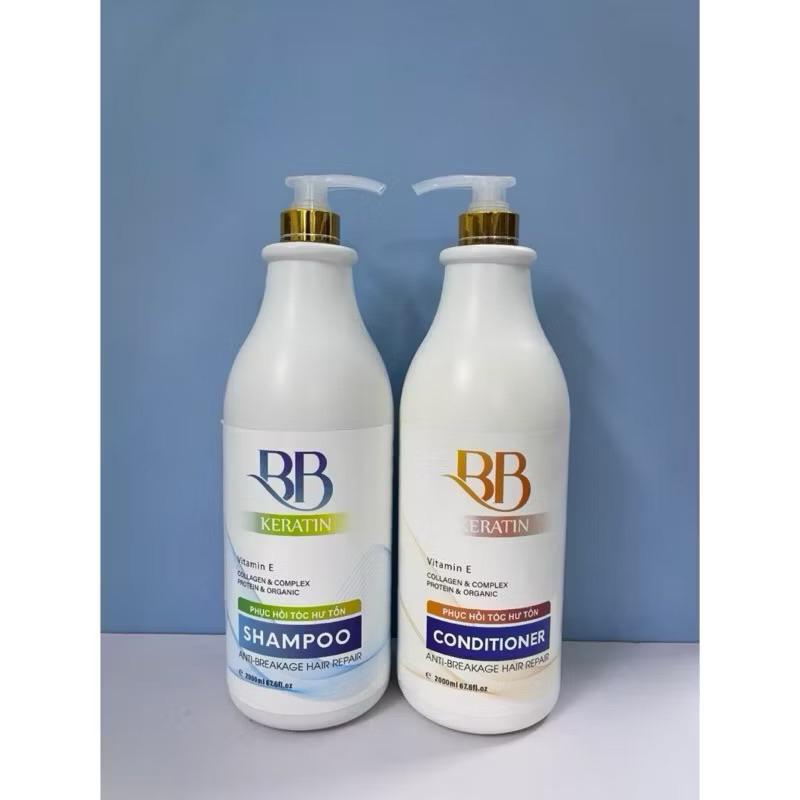 Dầu Gội Xả BB Keratin 2000ml Phục Hồi Tóc Khô Xơ Cung Cấp Độ Ẩm Cho Tóc Kích Thích Mọc Tóc Giảm Gãy Rụng Mềm Mượt