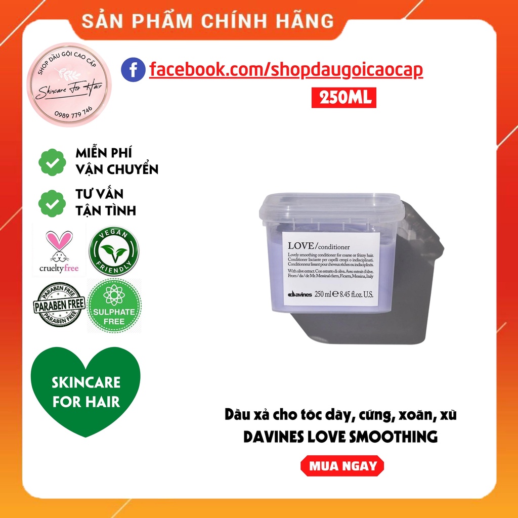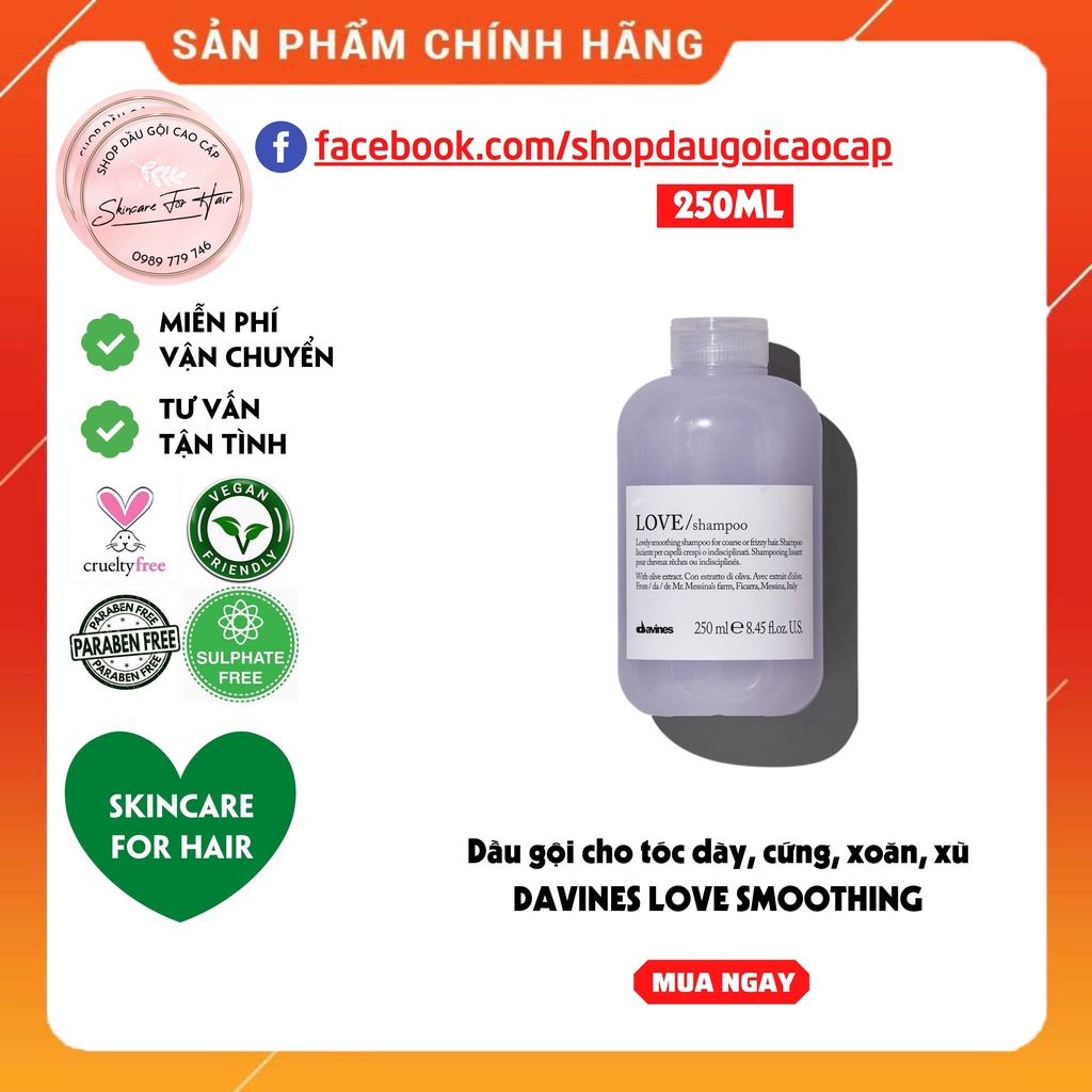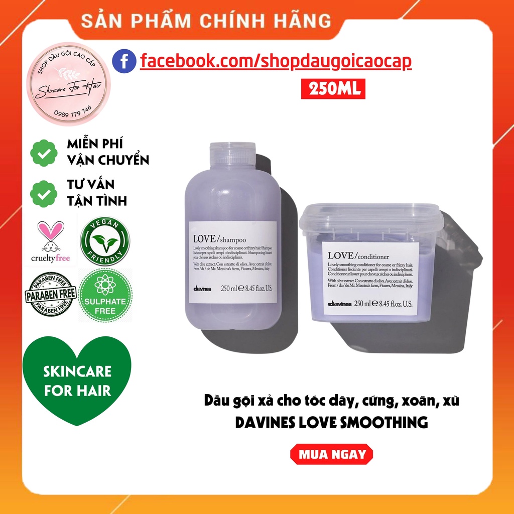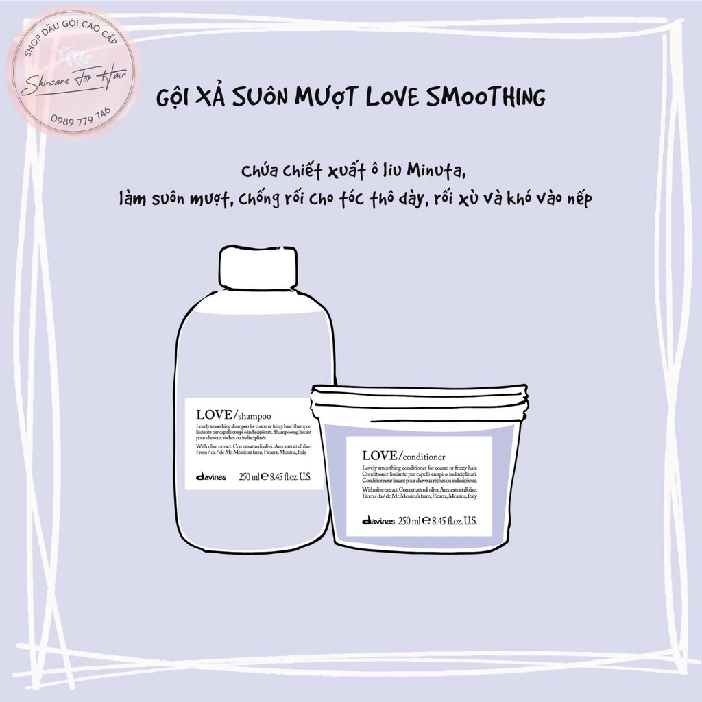 Dầu gội xả Davines Love Smoothing dung tích 250ml dành cho tóc dày, rối xù