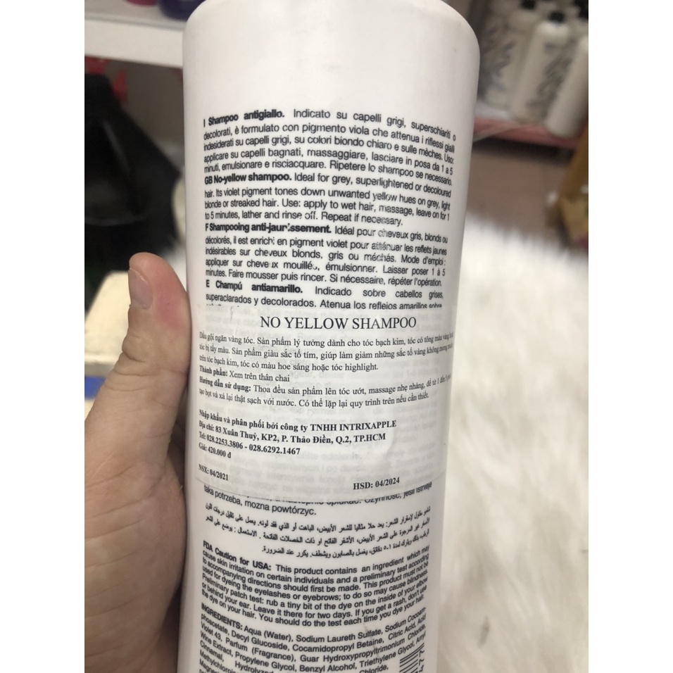 Dầu gội tím khử sắc tố vàng cho tóc bạch kim,xám khói Fanola No Yellow 1000ml