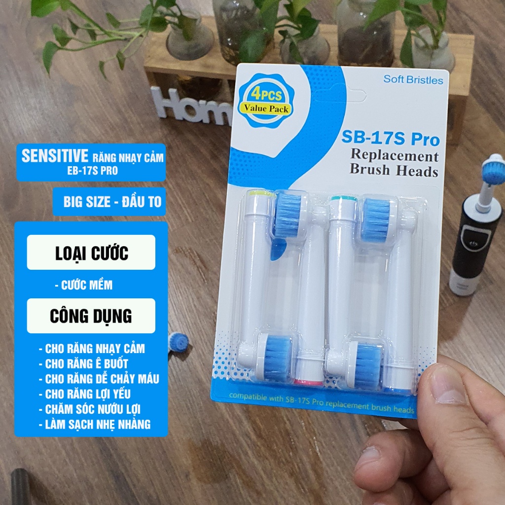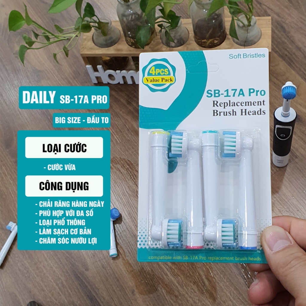 Cho máy Oral-B SB17A Pro, SB17s Pro Đầu to, bộ 4 đầu bàn chải đánh răng điện Big Size, Giá treo, Hộp Minh House