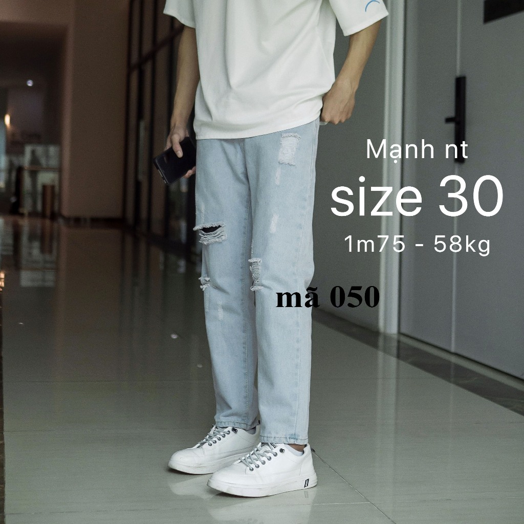 Quần jean nam ống suông rách gối dáng baggy màu xanh trắng nhạt mài xước đùi đẹp 050 Pon.mens