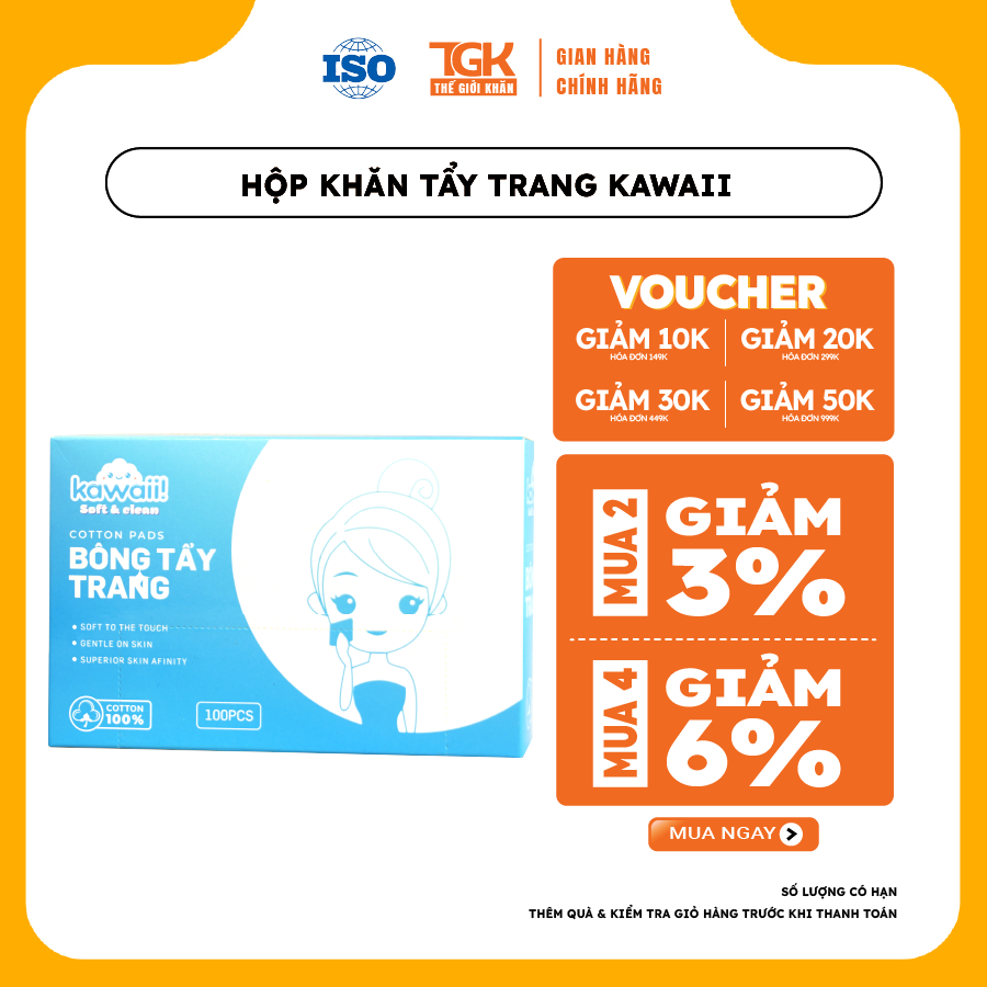 Khăn tẩy trang dùng 1 lần Kawaii - Làm sạch da, nhẹ nhàng mềm mịn, an toàn cho da