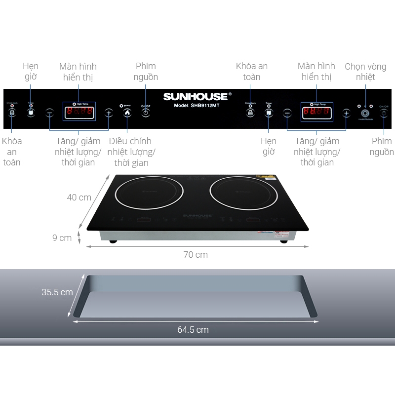 Bếp hồng ngoại đôi Sunhouse SHB9112MT (Hàng xả kho giá rẻ, lắp âm hay để nổi đều được, bảo hành chính hãng)