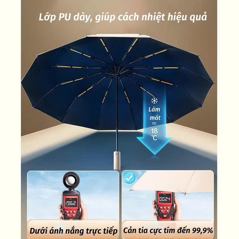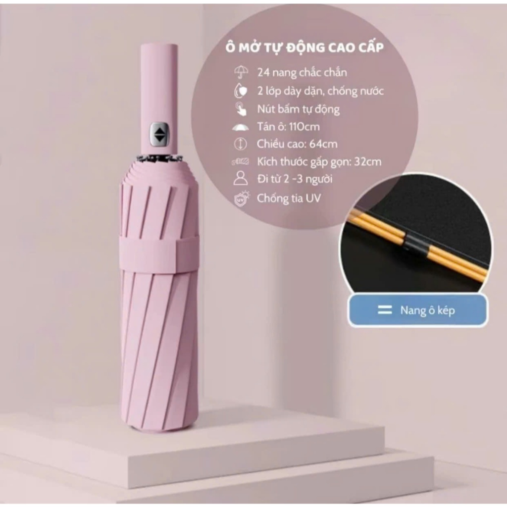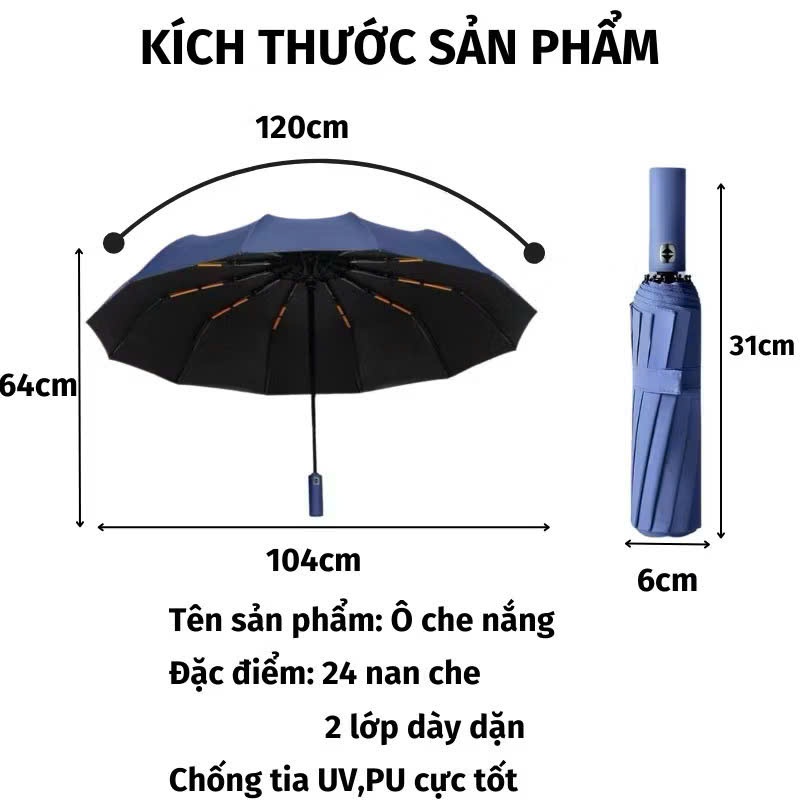 Ô che mưa 12 xương 24 nan chống tia uv nên đến 98 % chống lật gió cấp 5, Ô che nắng thiết kế thông minh đóng mở tự động