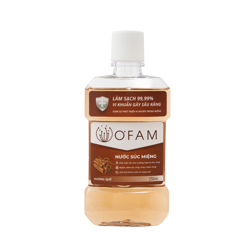 Nước súc miệng O'Fam ngừa viêm nướu, loại sạch mảng bám, mang lại hơi thở thơm mát tự nhiên 250ml