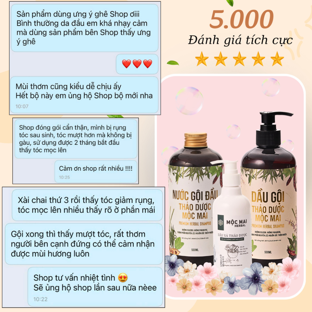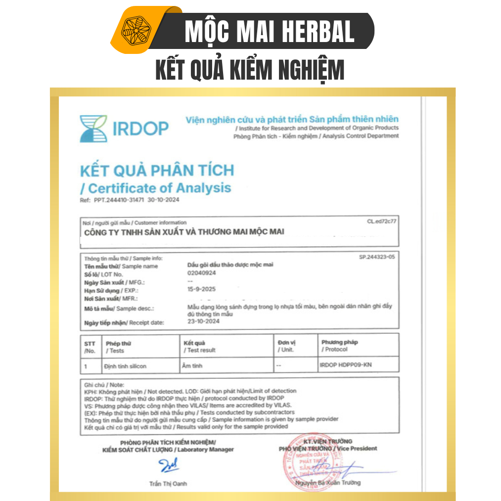 Dầu Gội Thảo Dược Không Silicon Tóc đẹp tự nhiên Chiết Xuất Thiên Nhiên Mộc Mai Herbal 500ml