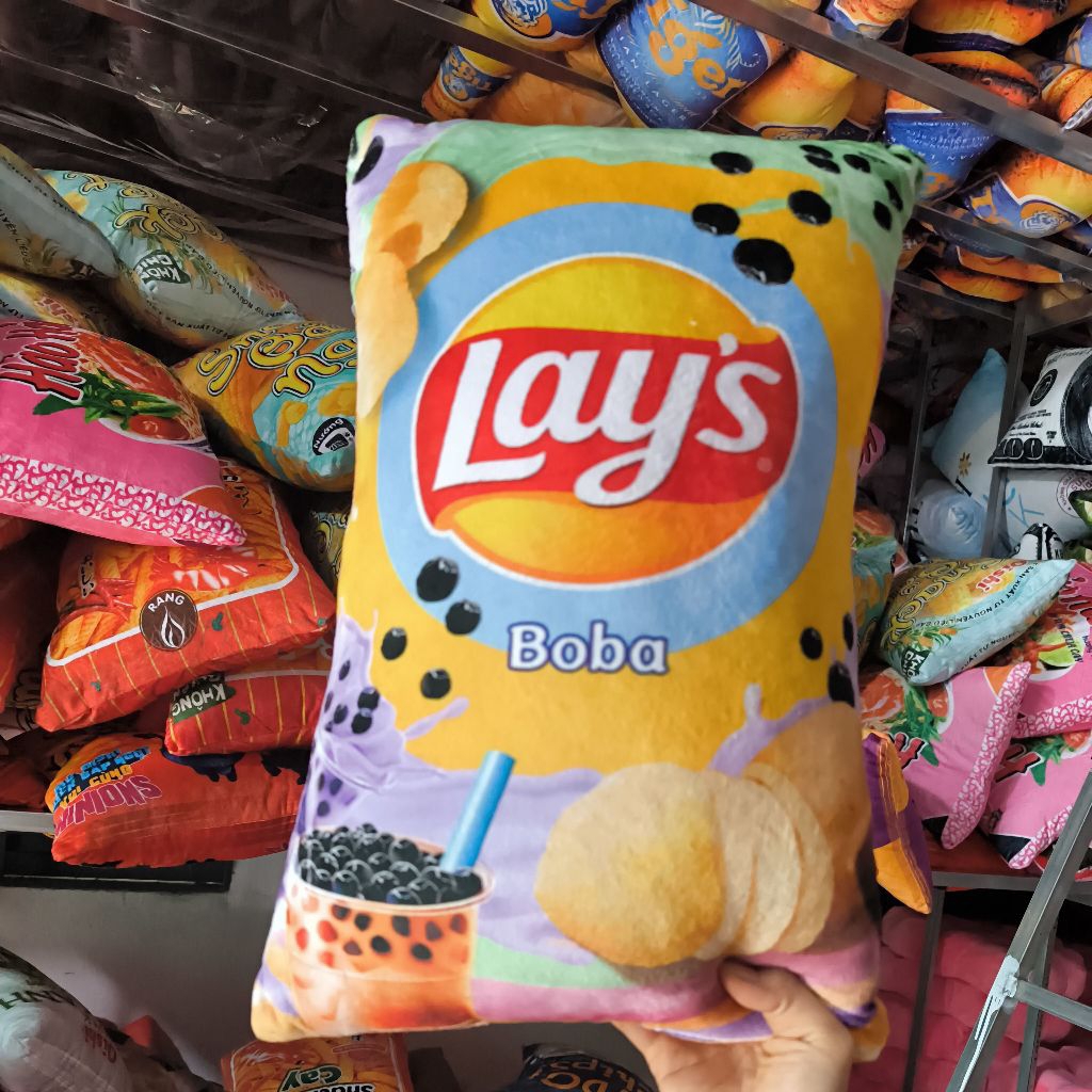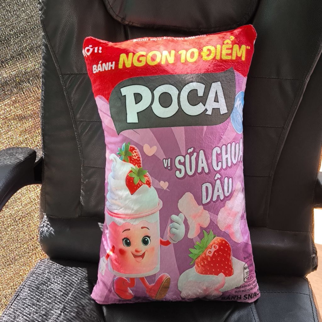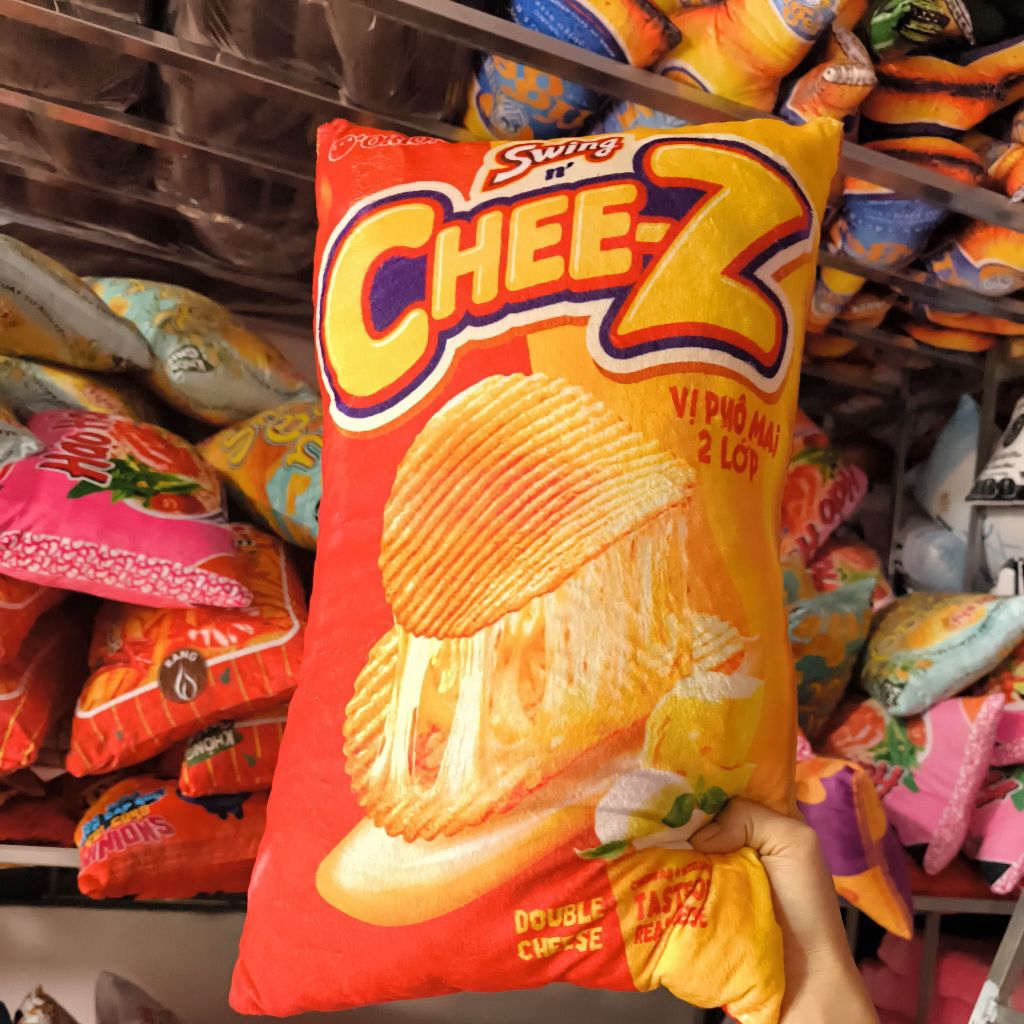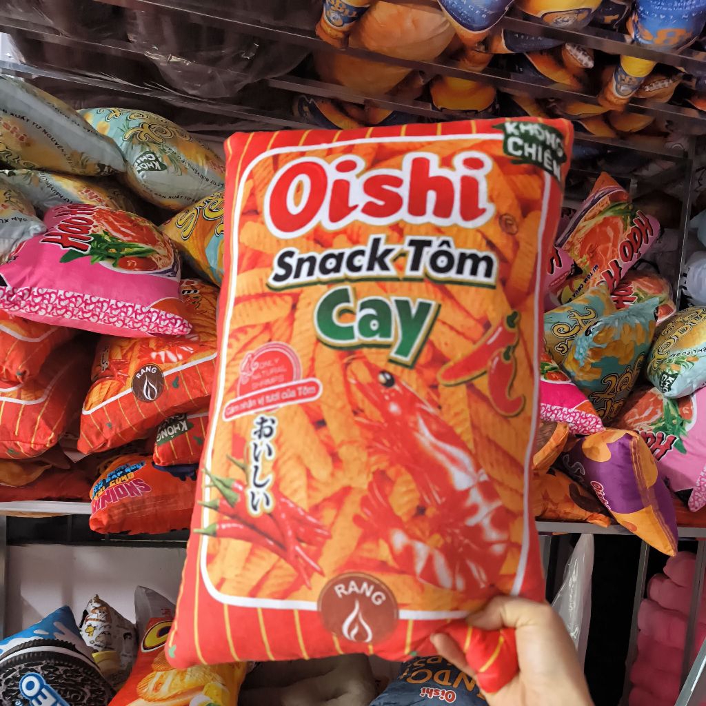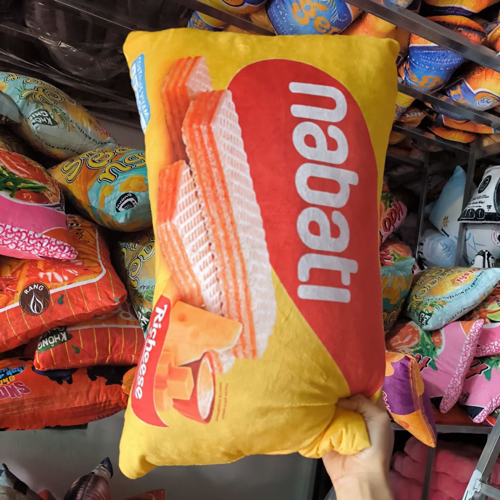 Gối in 3D ngộ nghĩnh cho bé, gấu bông bim bim, snack, mì gói, gấu bông 3D độc lạ làm quà tặng