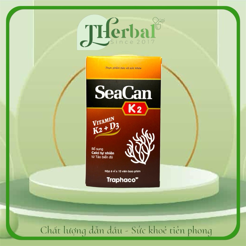 Canxi Seacan K2 Bổ Sung Canxi Tự Nhiên, Giảm Nguy Cơ Còi Xương, Loãng Xương Từ Tảo Biển Đỏ Hộp 60 Viên