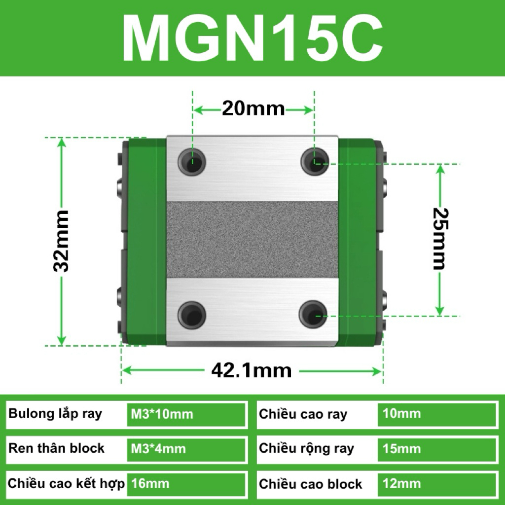Con trượt block trượt MGN7H MGN7C MGN9H MGN9C MGN12H MGN12C cho máy in 3D, máy CNC, robot,..