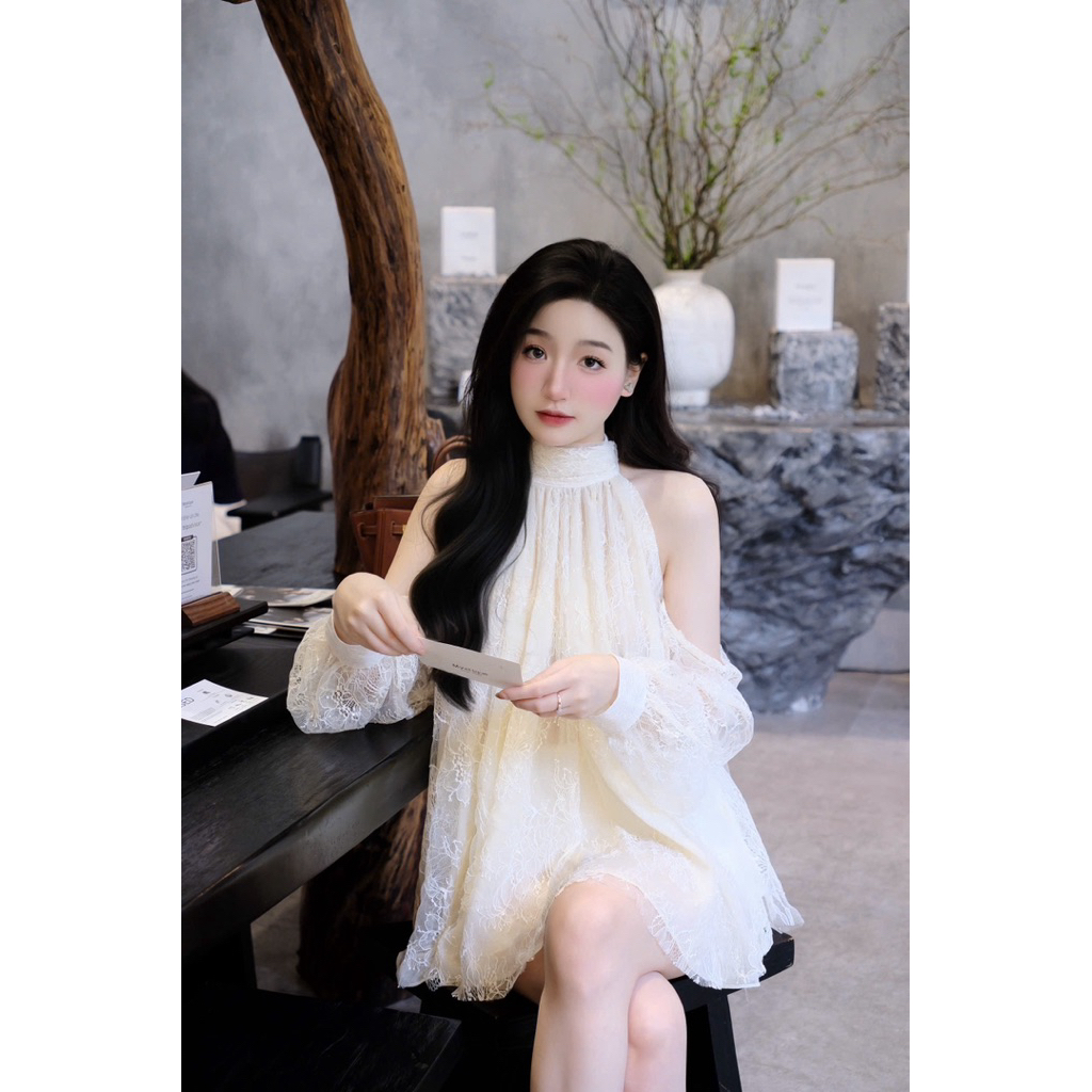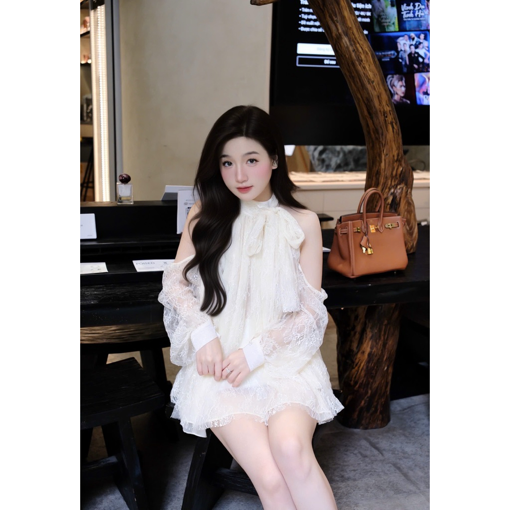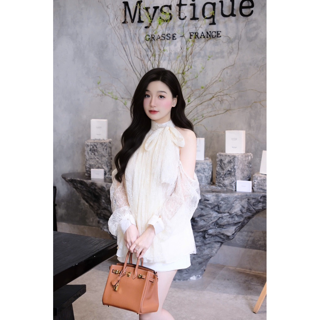AMY TOP - Áo ren dài tay trễ vai buộc nơ thiết kế DTM