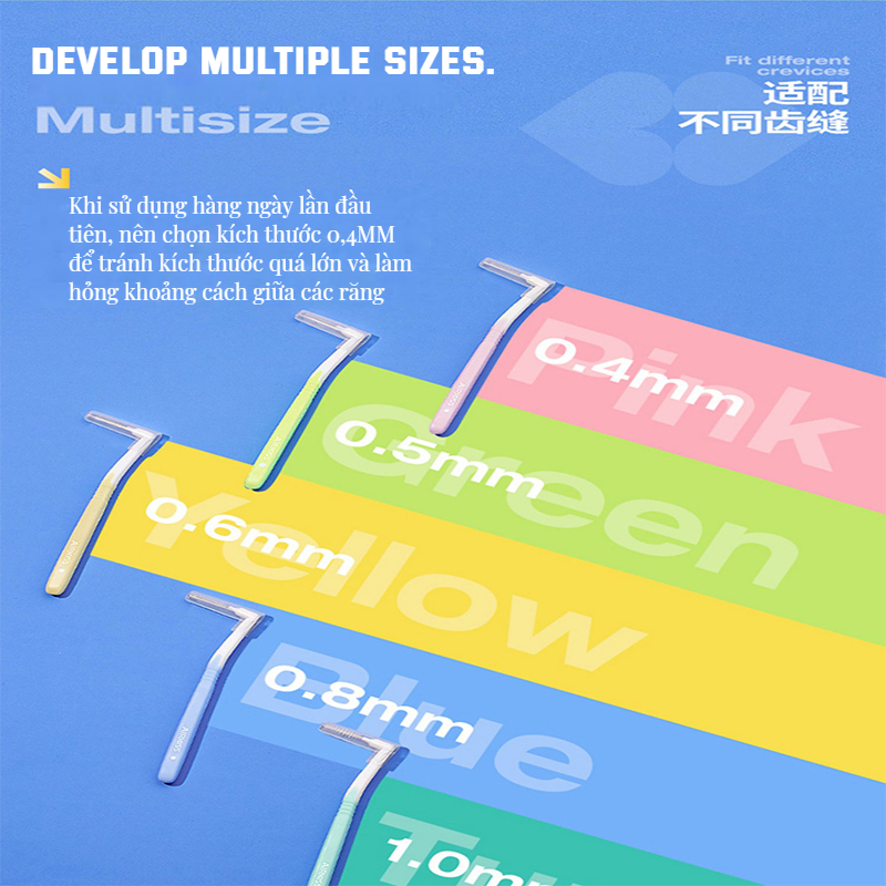 AIRKISS Bộ 10 bàn chải kẽ răng mềm chỉnh nha hình chữ L 0.4mm-1.0mm