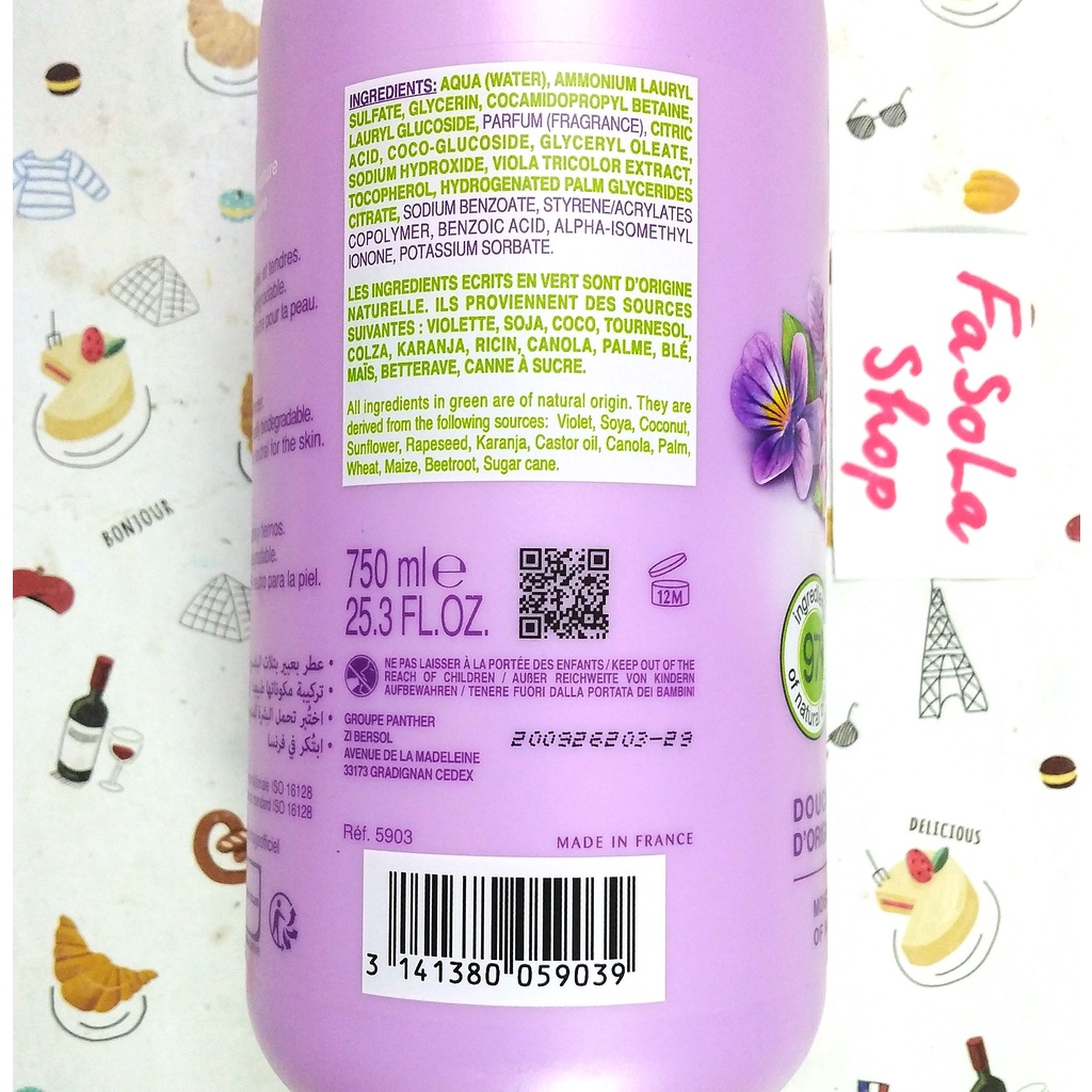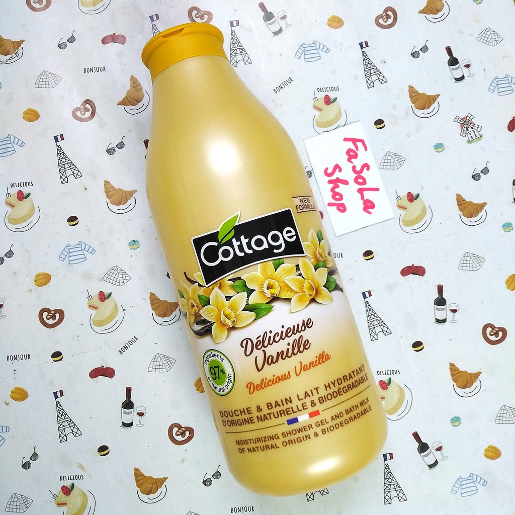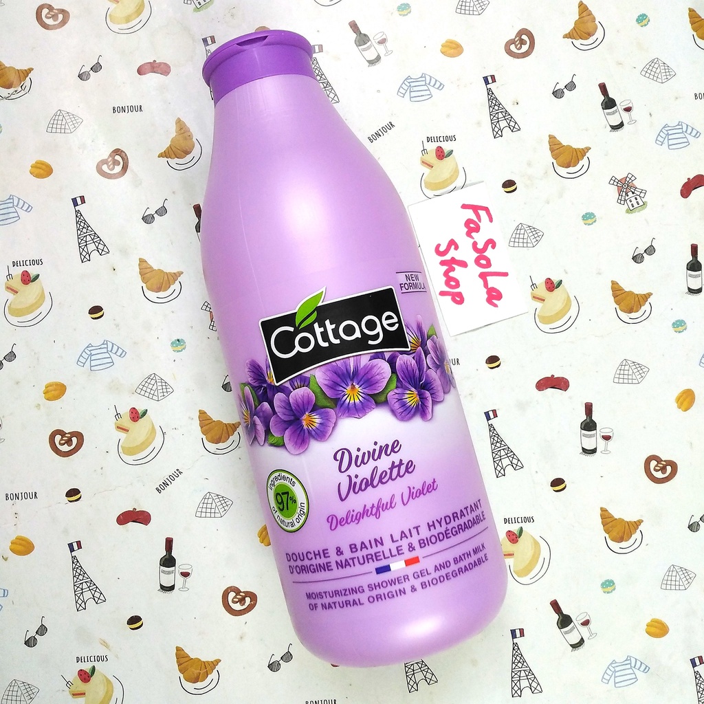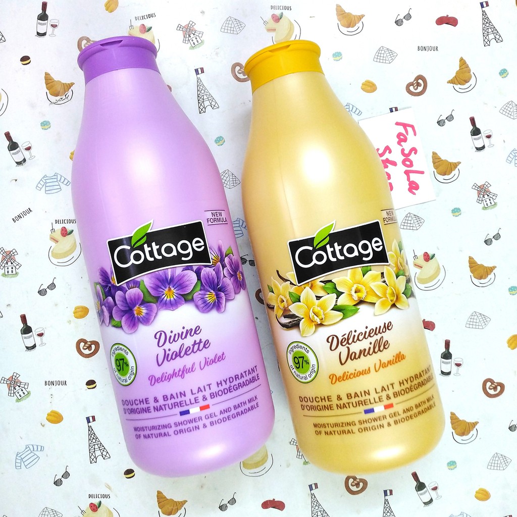 Sữa tắm COTTAGE Pháp 750ml vanila violet dưỡng ẩm trắng mềm mịn thơm dịu cam dừa chanh caramel dâu