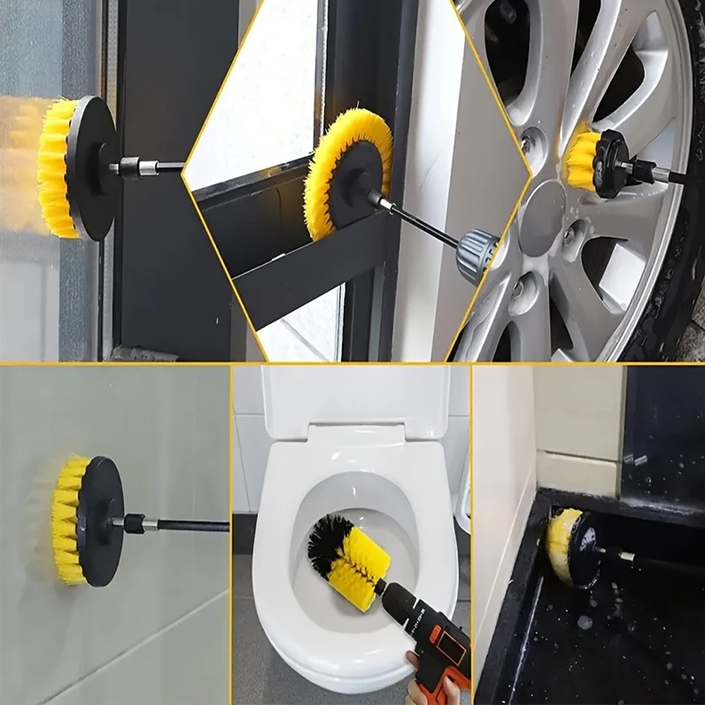 Bộ 7 Món Bàn Chải Khoan Đa Năng, Dụng Cụ Vệ Sinh Sàn, Ô Tô, Kèm Cực Nối Dài