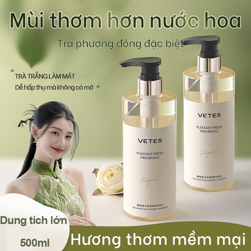 VETES Dầu gội trà trắng kiểm soát dầu chống gàu chống ngứa nước hoa lâu trôi dầu (500ml)