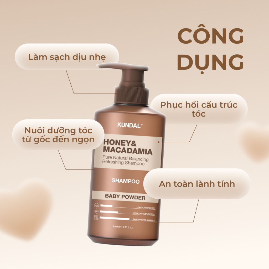 Dầu Gội Phục Hồi Tóc Kundal Honey&Macadamia, Dầu Gội Kích Thích Mọc Tóc An Toàn Lành Tính 500ml