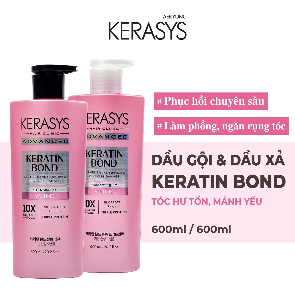 Cặp dầu gội xả Kerasys Advanced Keratin Bond Volume phục hồi chuyên sâu, làm phồng, ngăn rụng tóc
