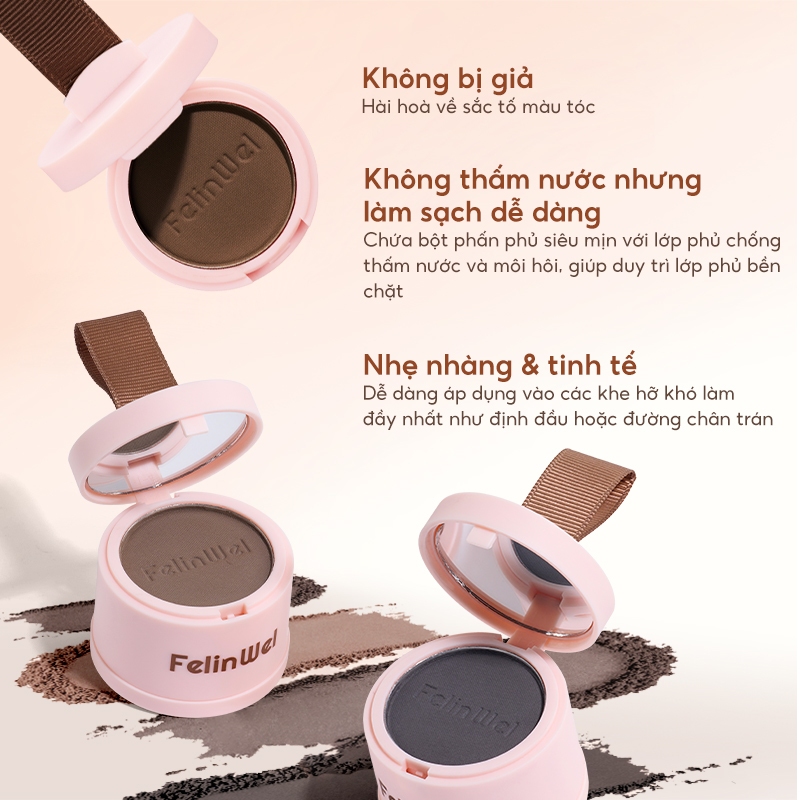 FelinWel - Chấm Hói Tóc, Phấn Che Hói, Phấn Phủ Che Đường Chân Tóc với Gương Và Bông Phấn, Che Phủ Ngay Lập Tức