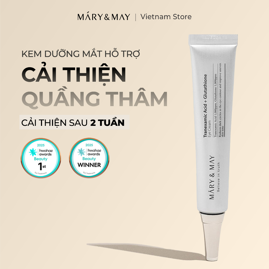 Kem Mắt Dưỡng Hỗ Trợ Giảm Thâm Quầng Mắt Mary&May Tranexamic Acid + Glutathion Eye Cream