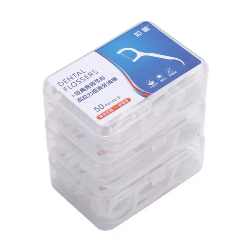 Tăm chỉ nha khoa hộp 50 Cây Dental Flossers tăm chỉ vệ sinh răng sạch sẽ ngăn ngừa sâu răng hàng chuẩn(1 set 2 hộp)