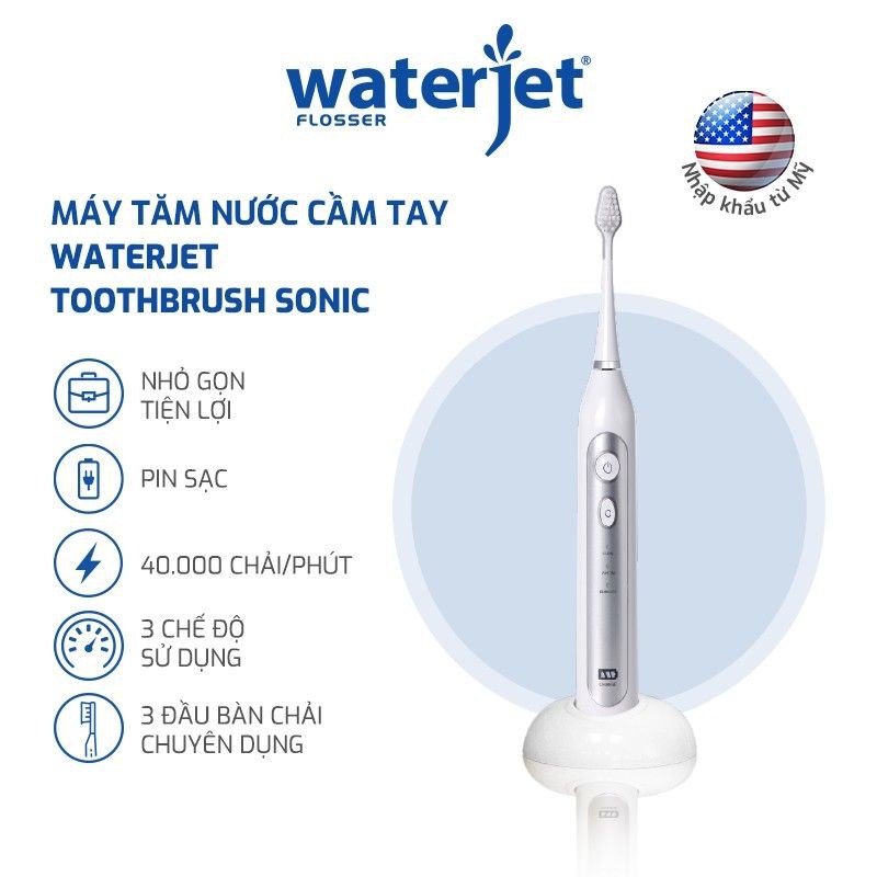 [HỎA TỐC] WaterJet Sonic- Bàn chải điện sóng âm Toothbrush- sạch gấp 10 lần- (hàng USA) - BH 1 năm