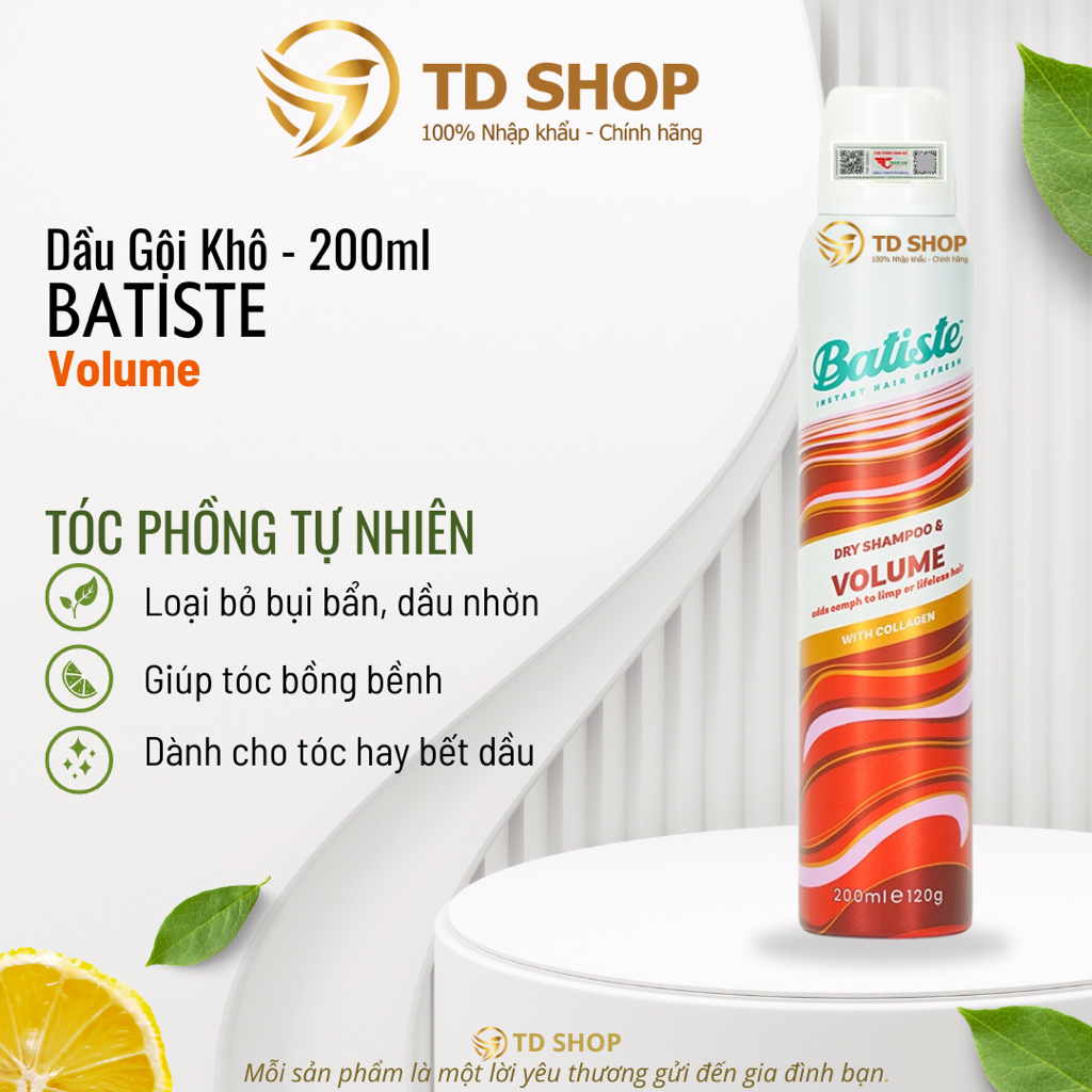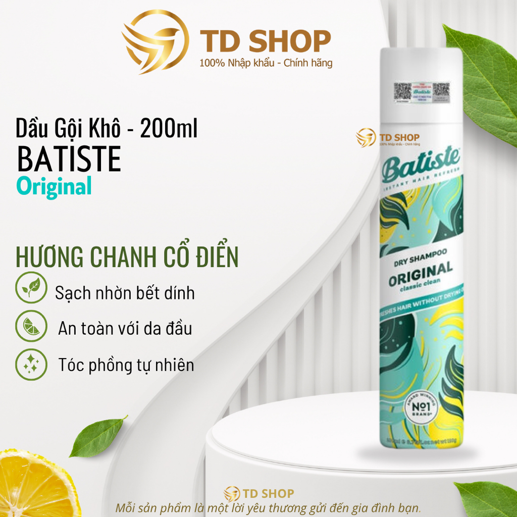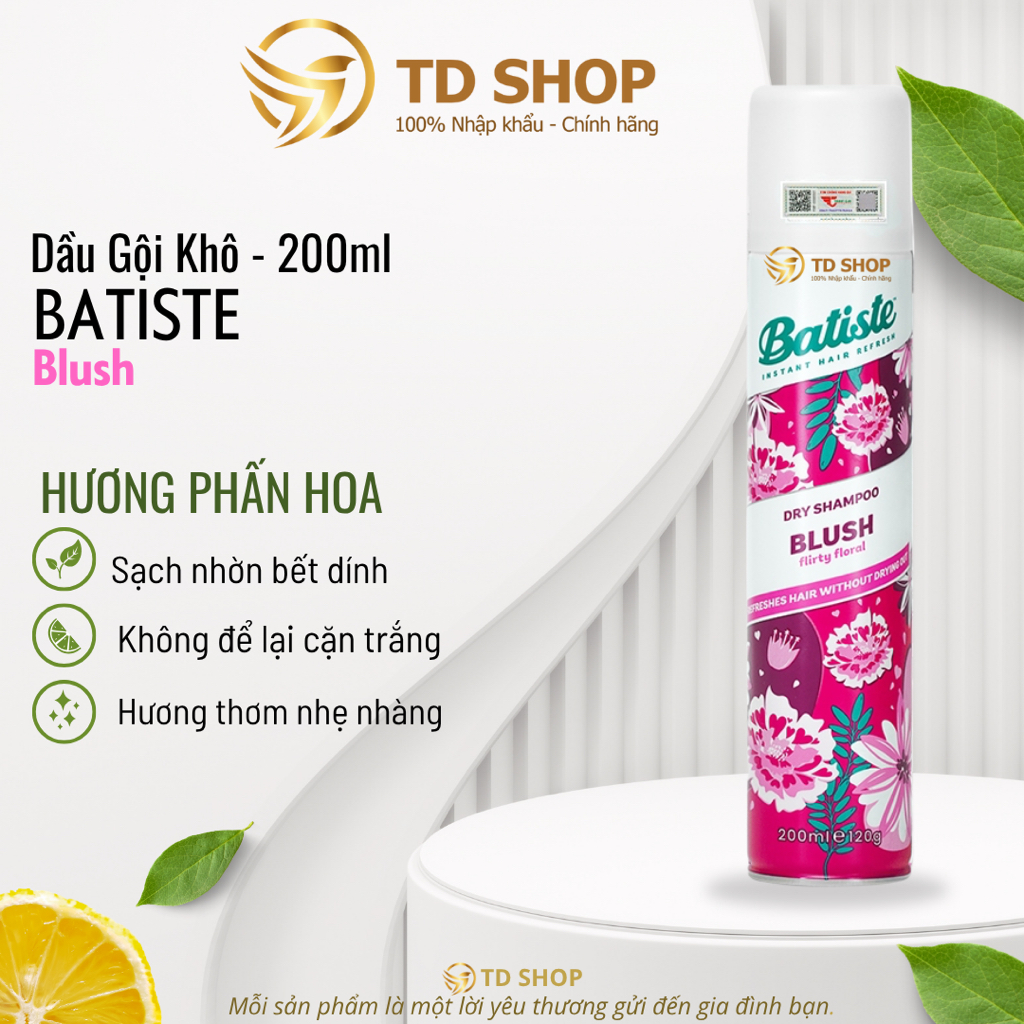 [NK UK, Thái] Dầu gội khô Batiste Dry Shampoo 200ml Cherry | Fresh | Original | Blush | Rose Gold | Volume - TD Shop
