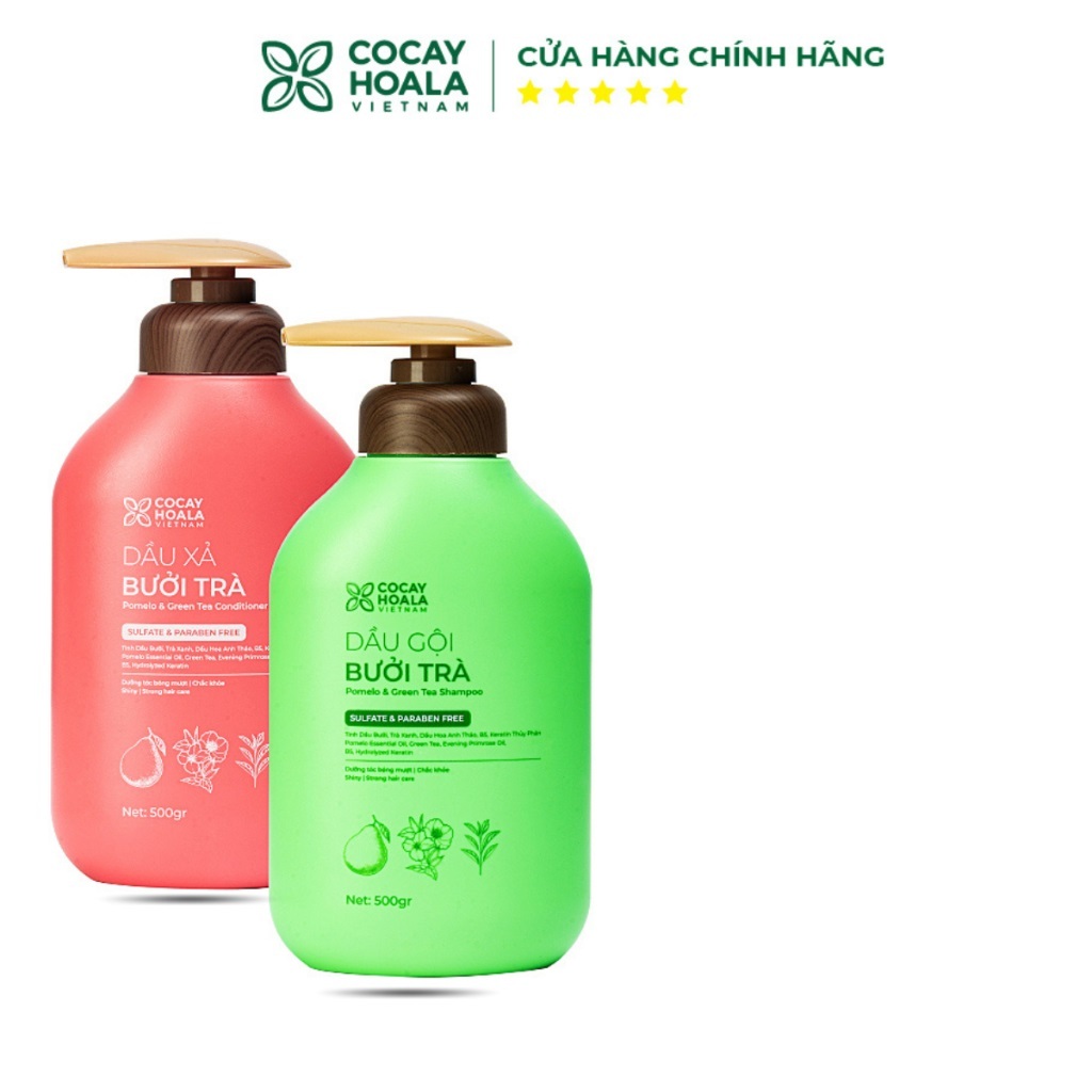 Dầu Gội Và Xả Bưởi Trà COCAYHOALA , Dưỡng Tóc Chắc Khỏe Chai 500gr