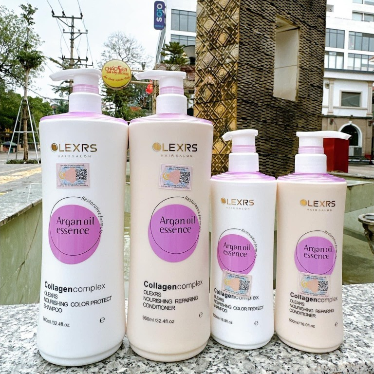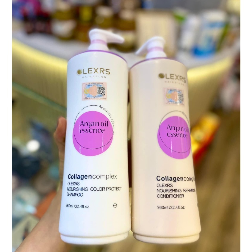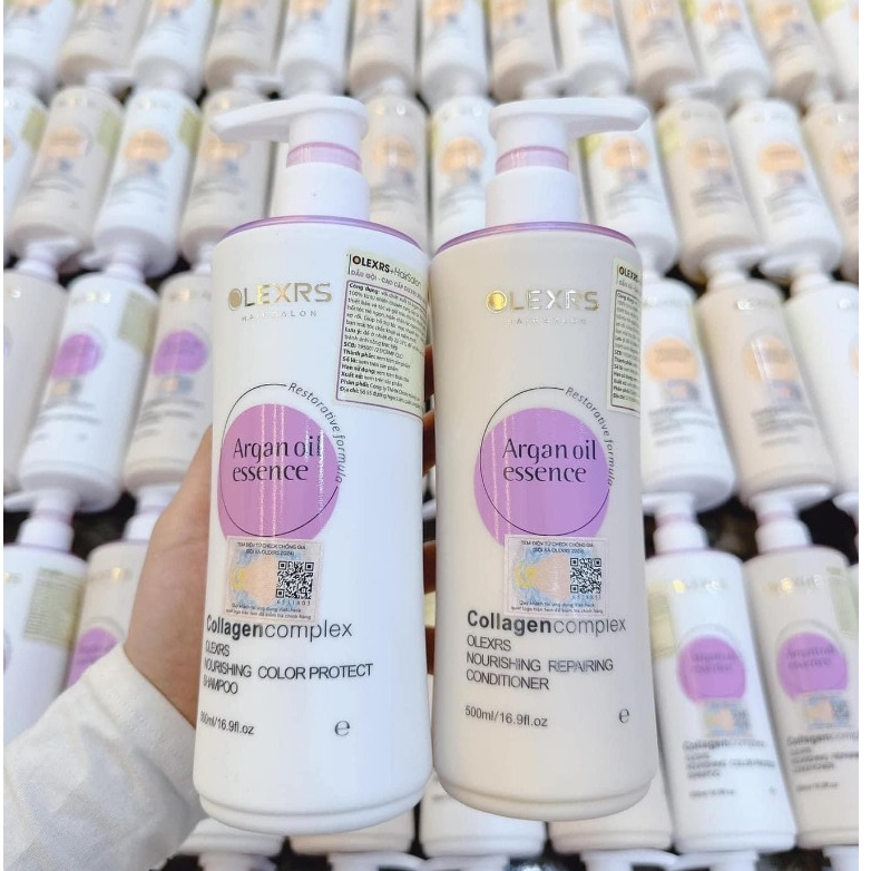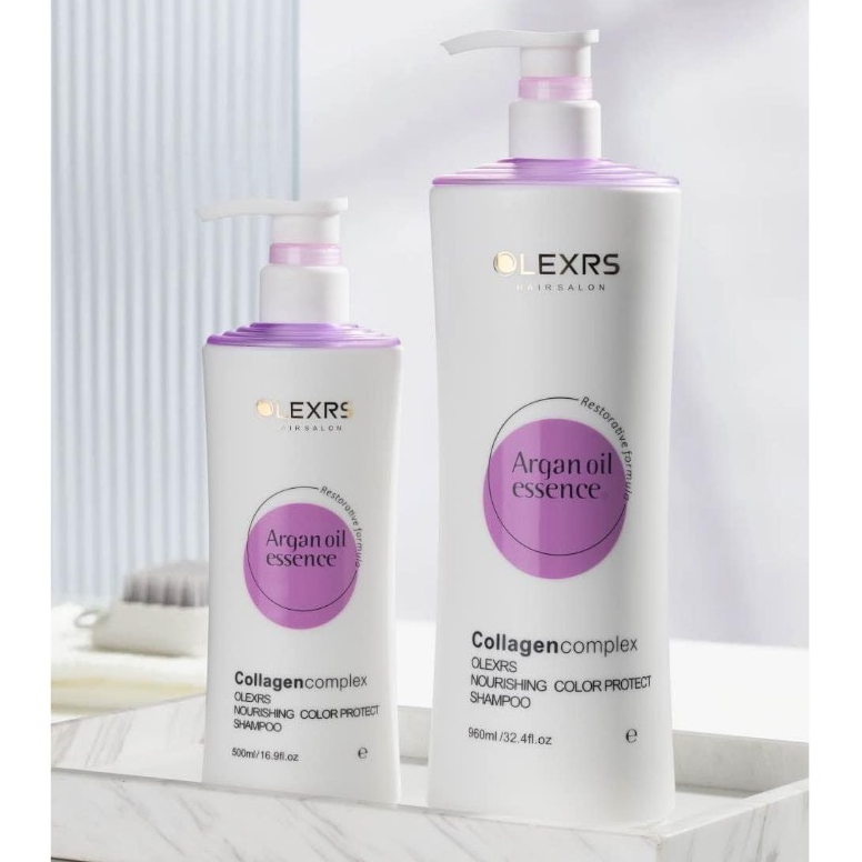 (Mẫu Mới) Cặp dầu gội xả Olexrs Argan Oil Collagen Hair Salon Phục hồi và giữ màu cho tóc Màu Tím