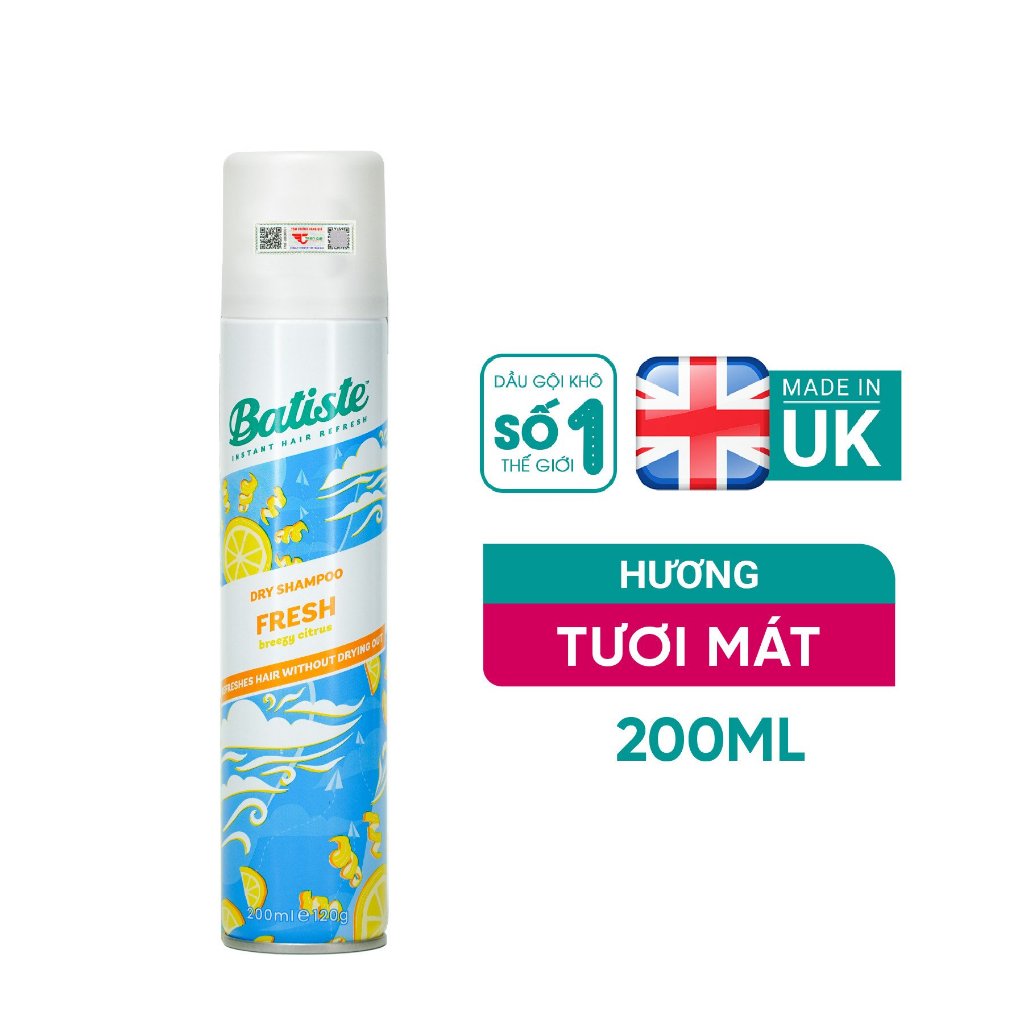 Dầu Gội Khô Batiste Dry Shampoo 200ml Hết Ngứa, Hết Bết Dính Tóc Bồng Bềnh Tức Thì