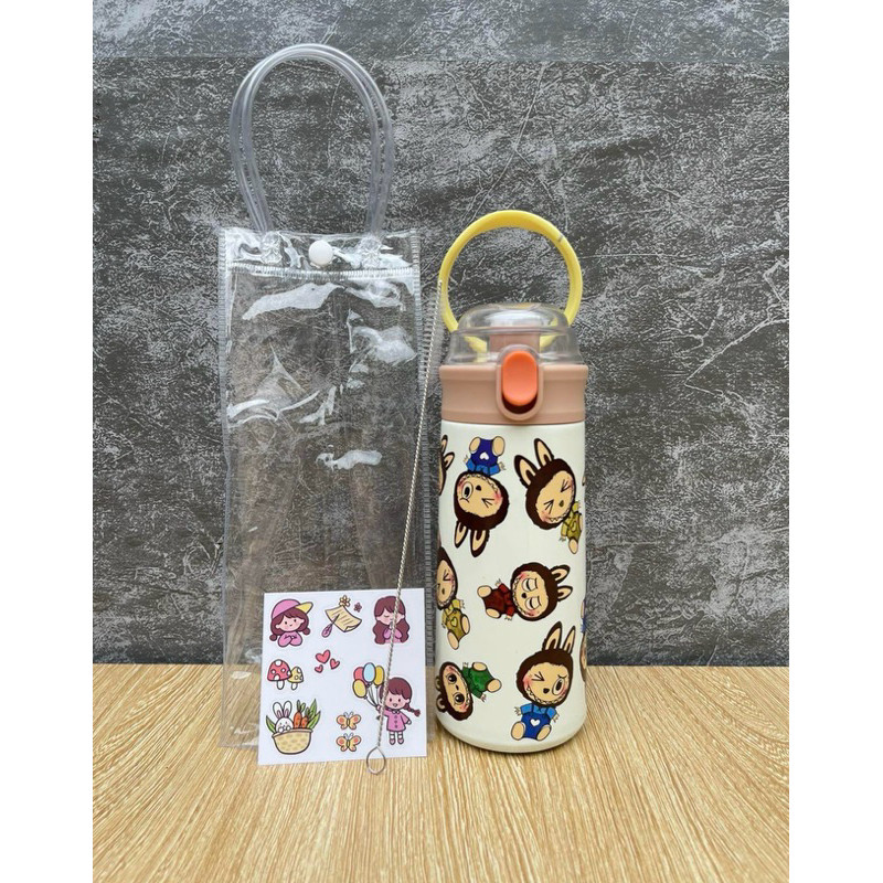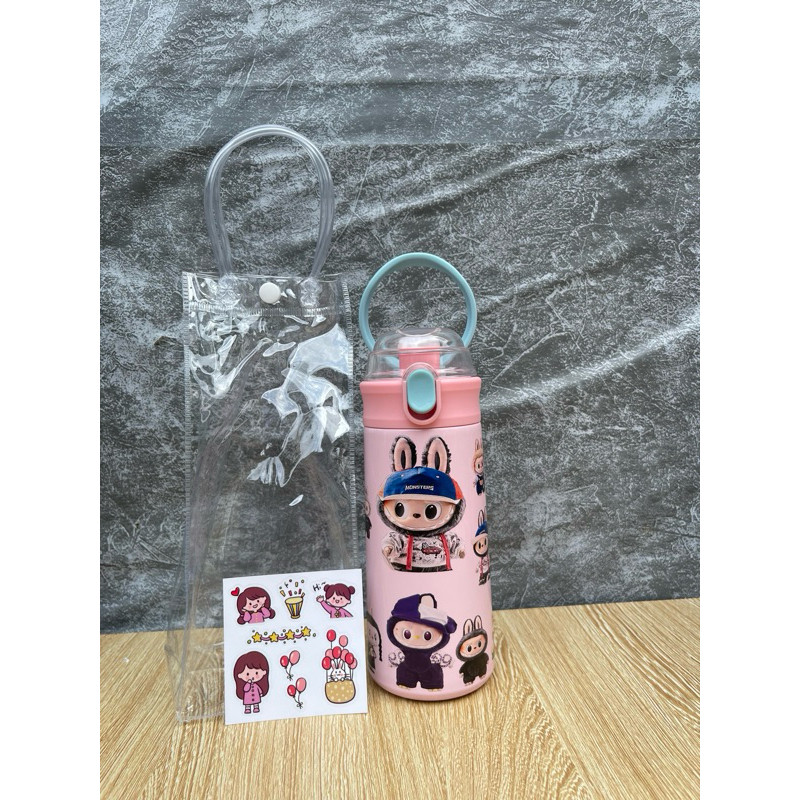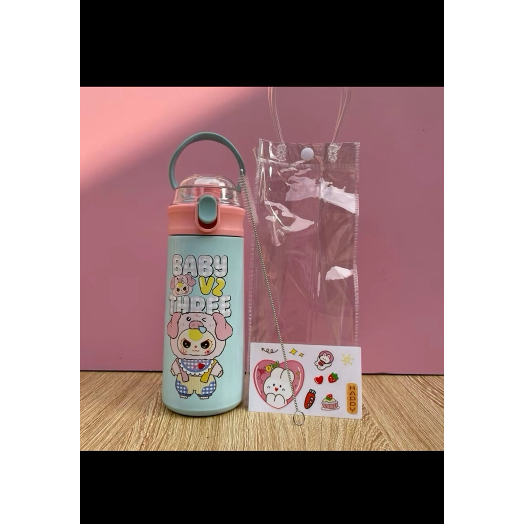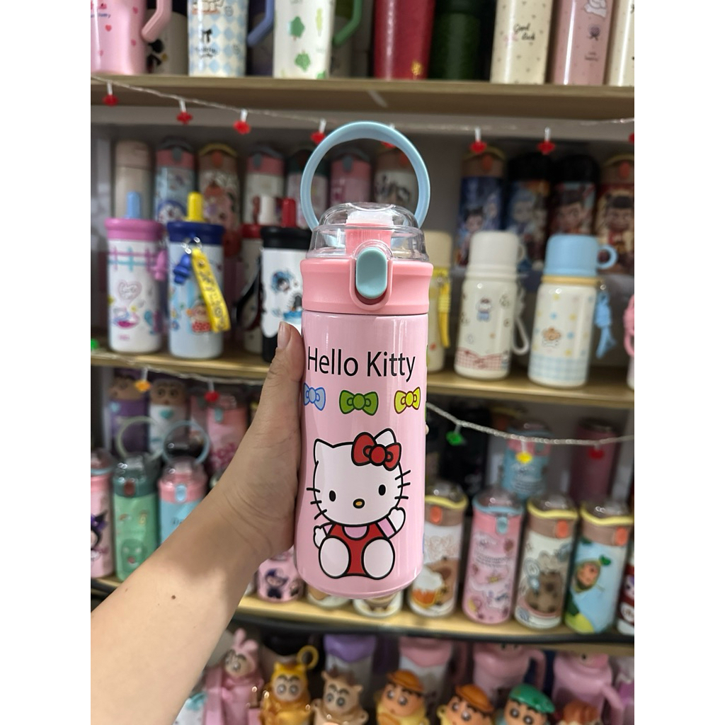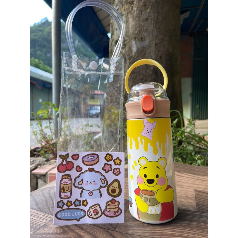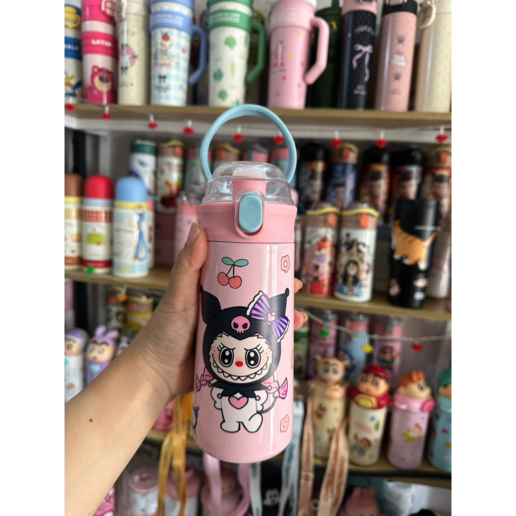 Bình Giữ Nhiệt Cho Bé Đi Học 500ml - Inox 304, Có Ống Hút, Tay Cầm Chống Rơi, Có Dây
