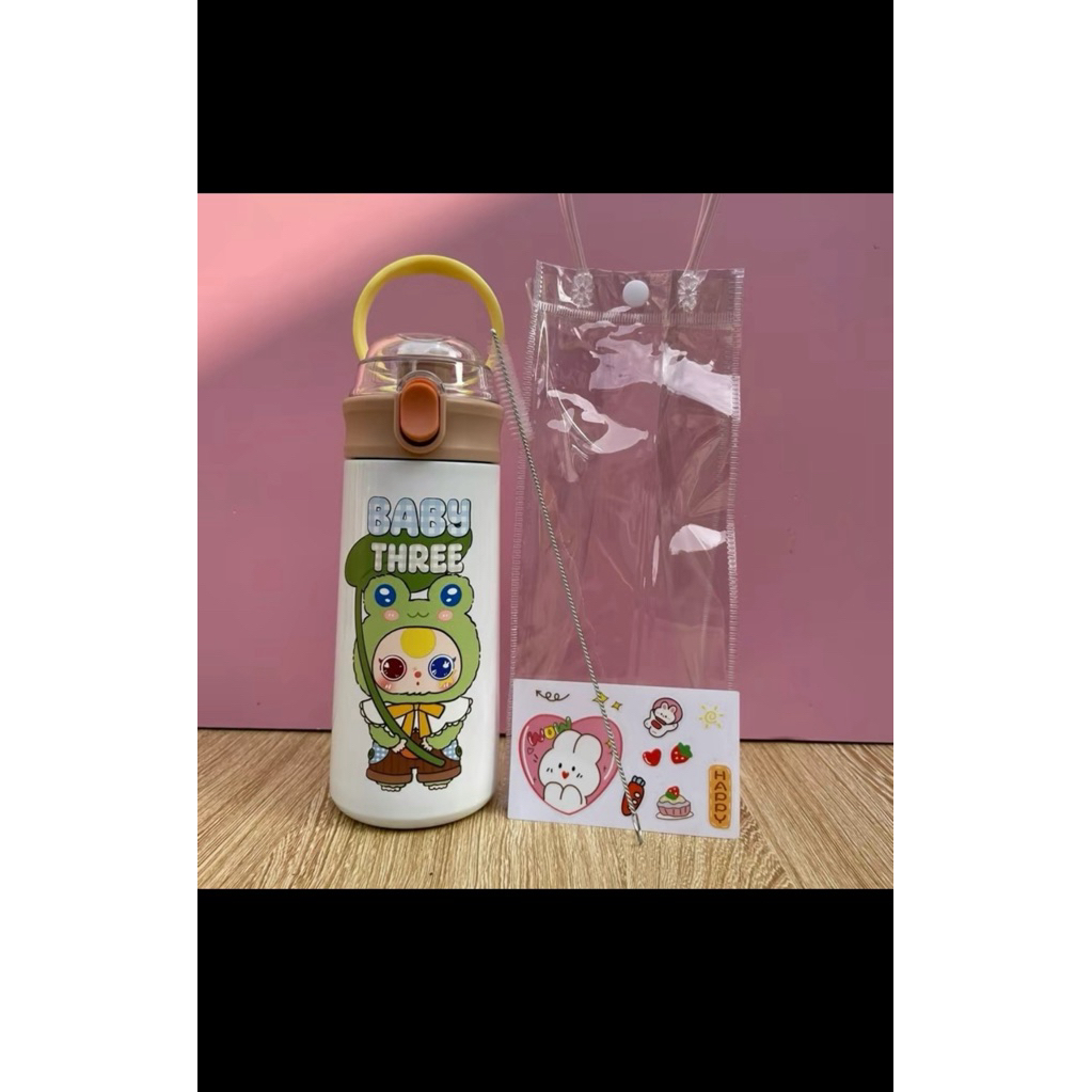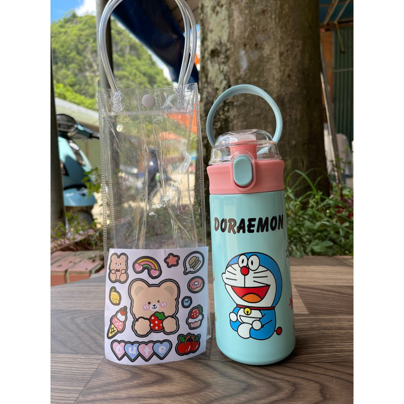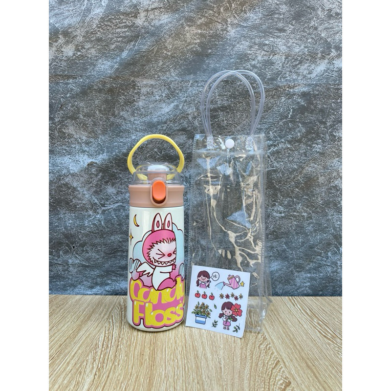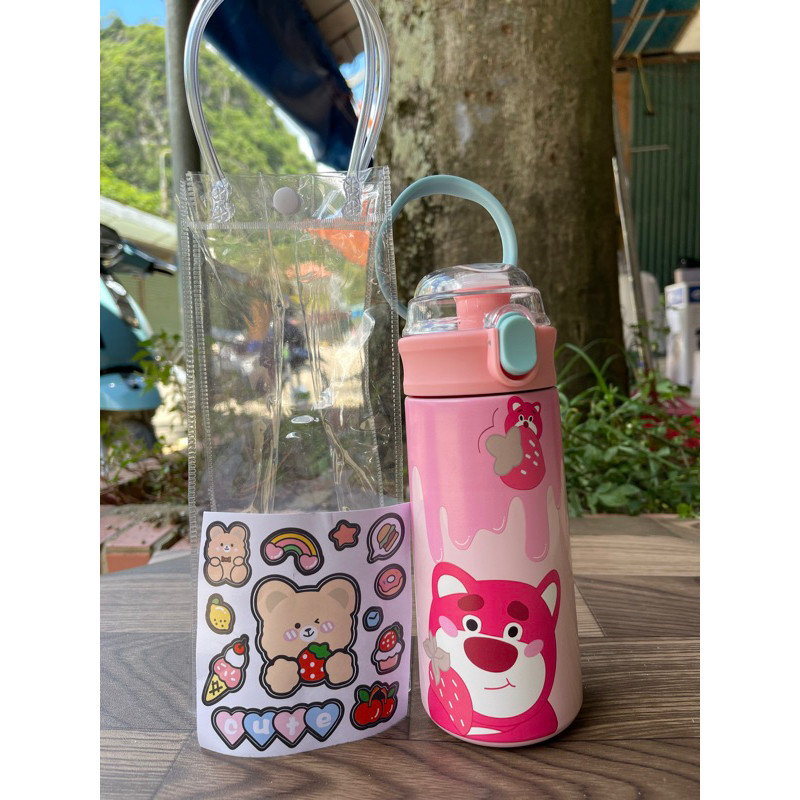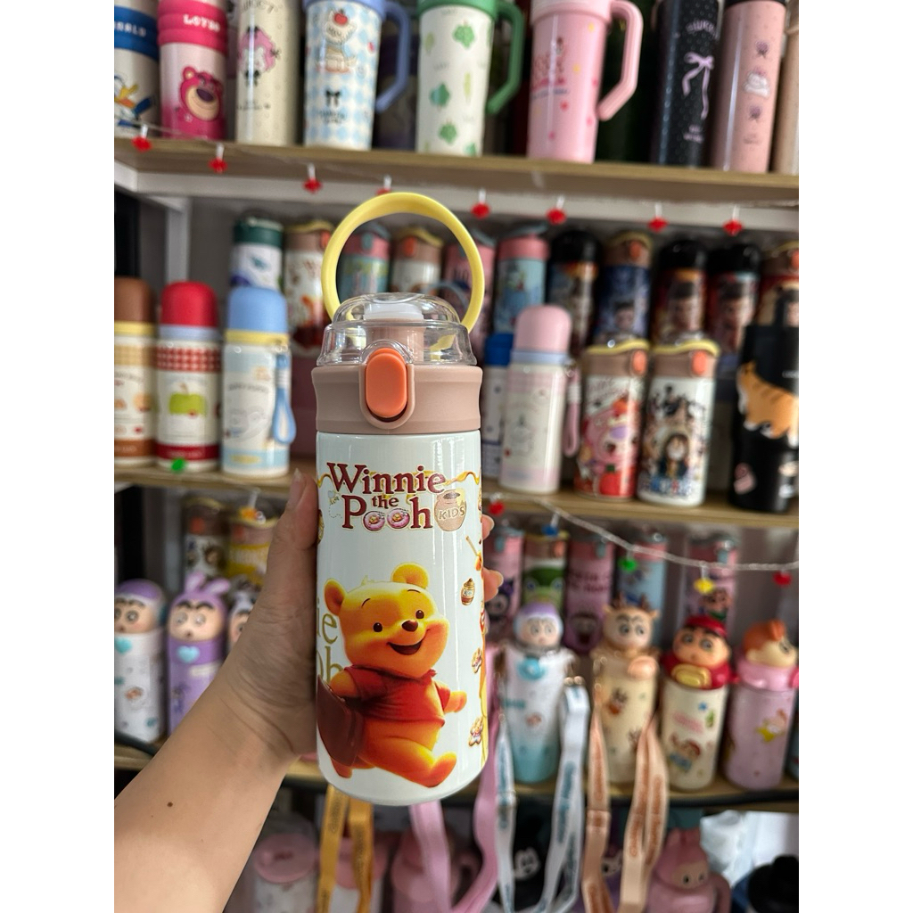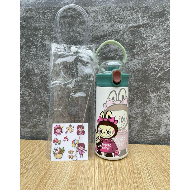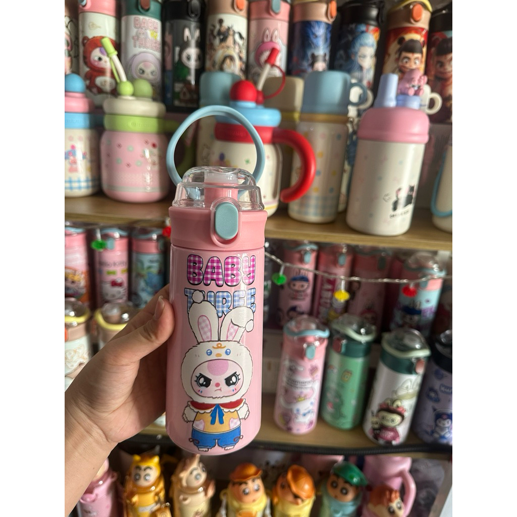 Bình Giữ Nhiệt Cho Bé Đi Học 500ml - Inox 304, Có Ống Hút, Tay Cầm Chống Rơi, Có Dây