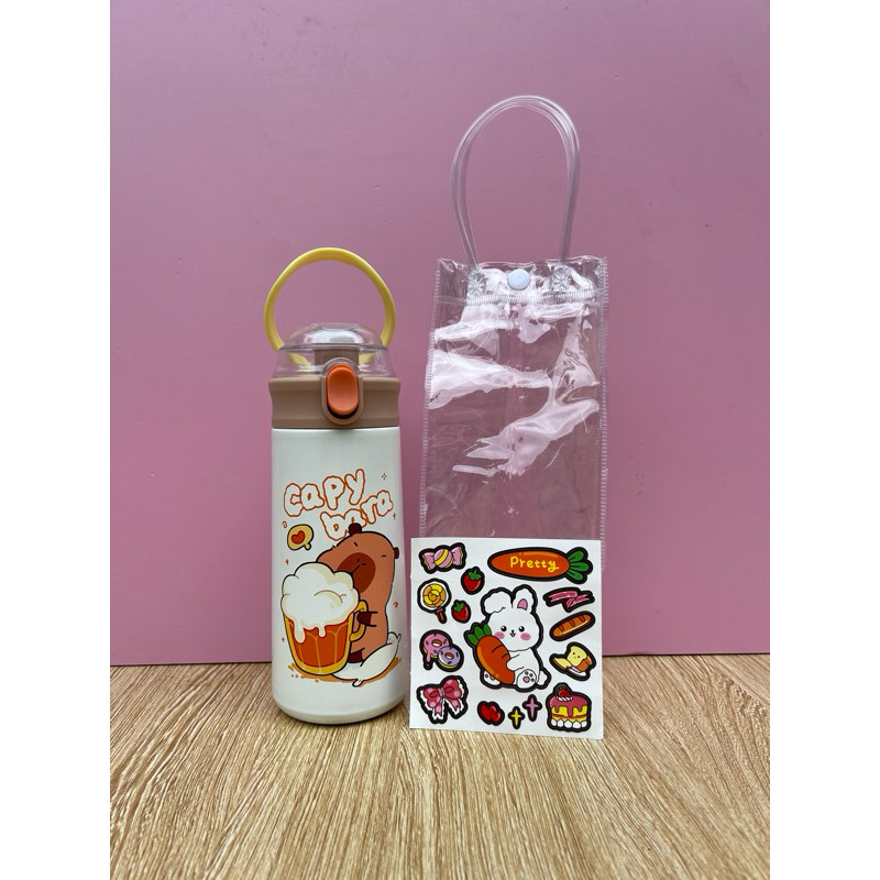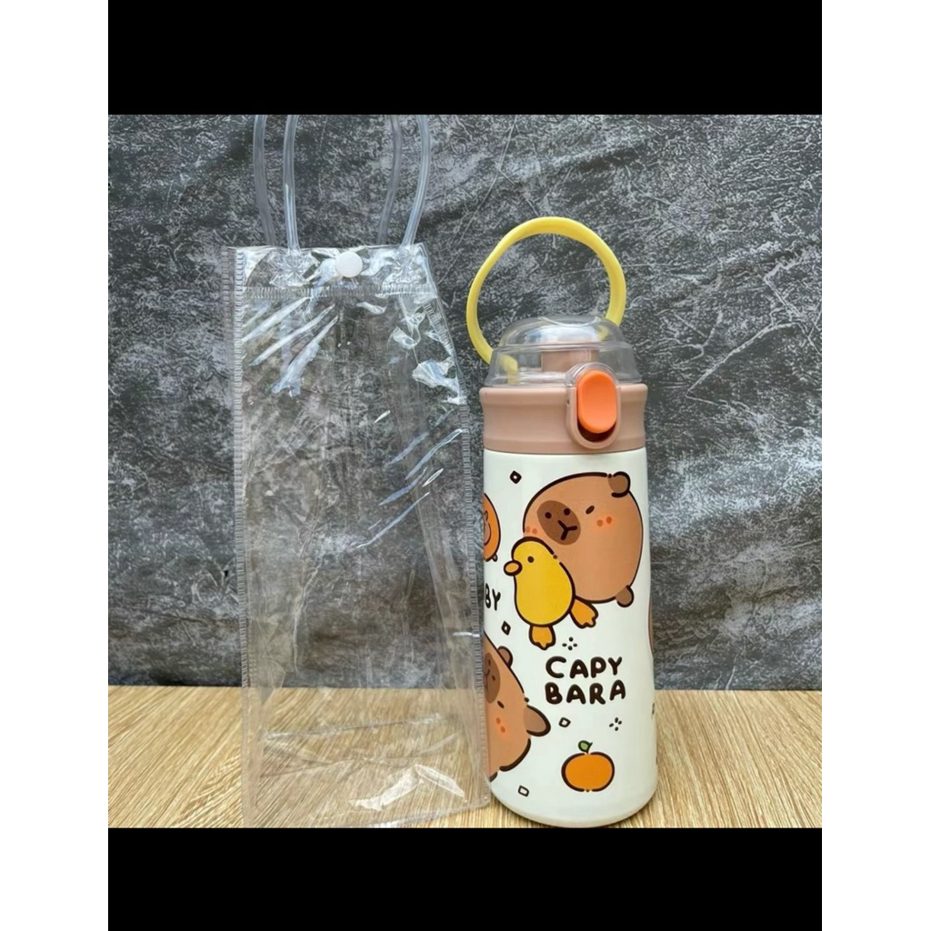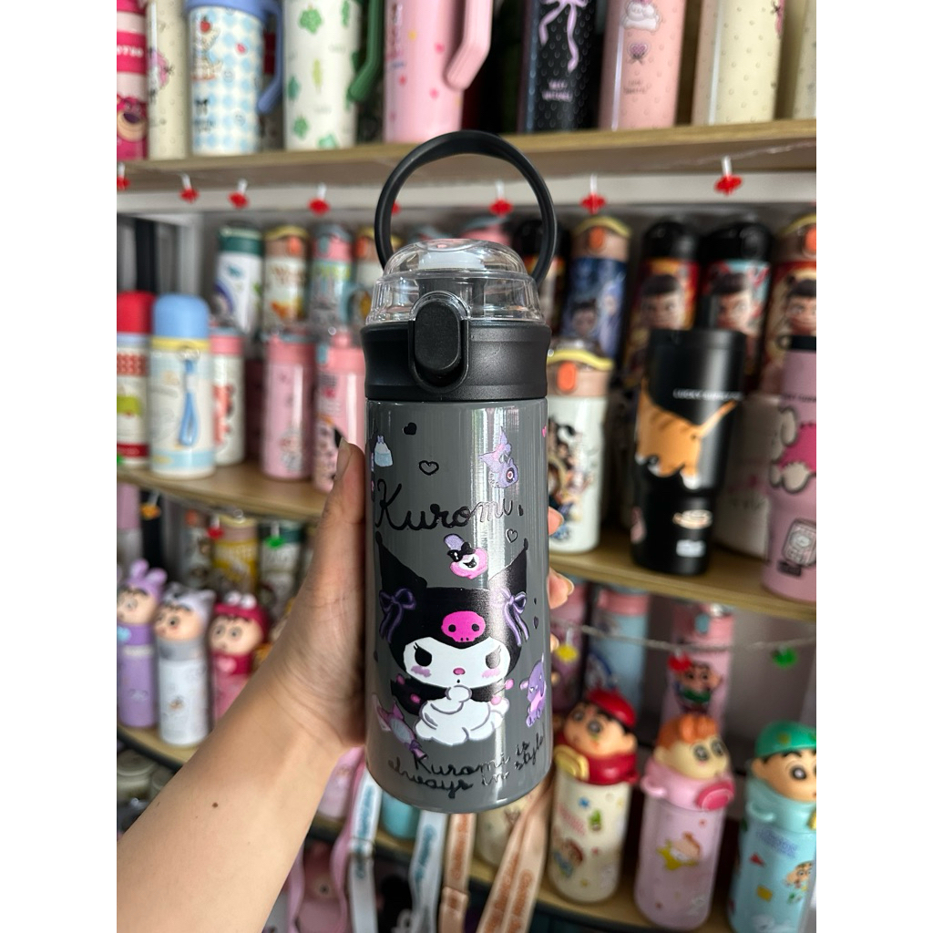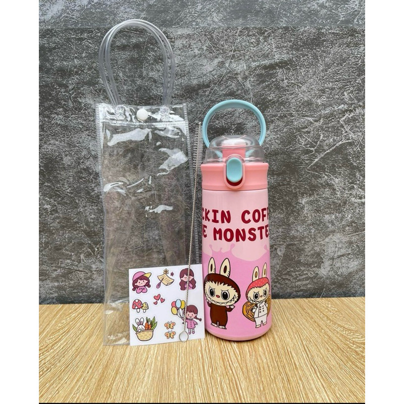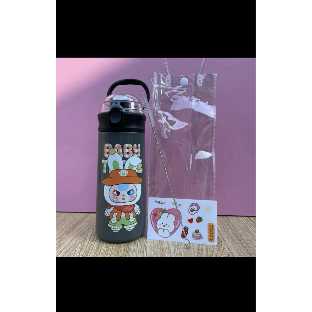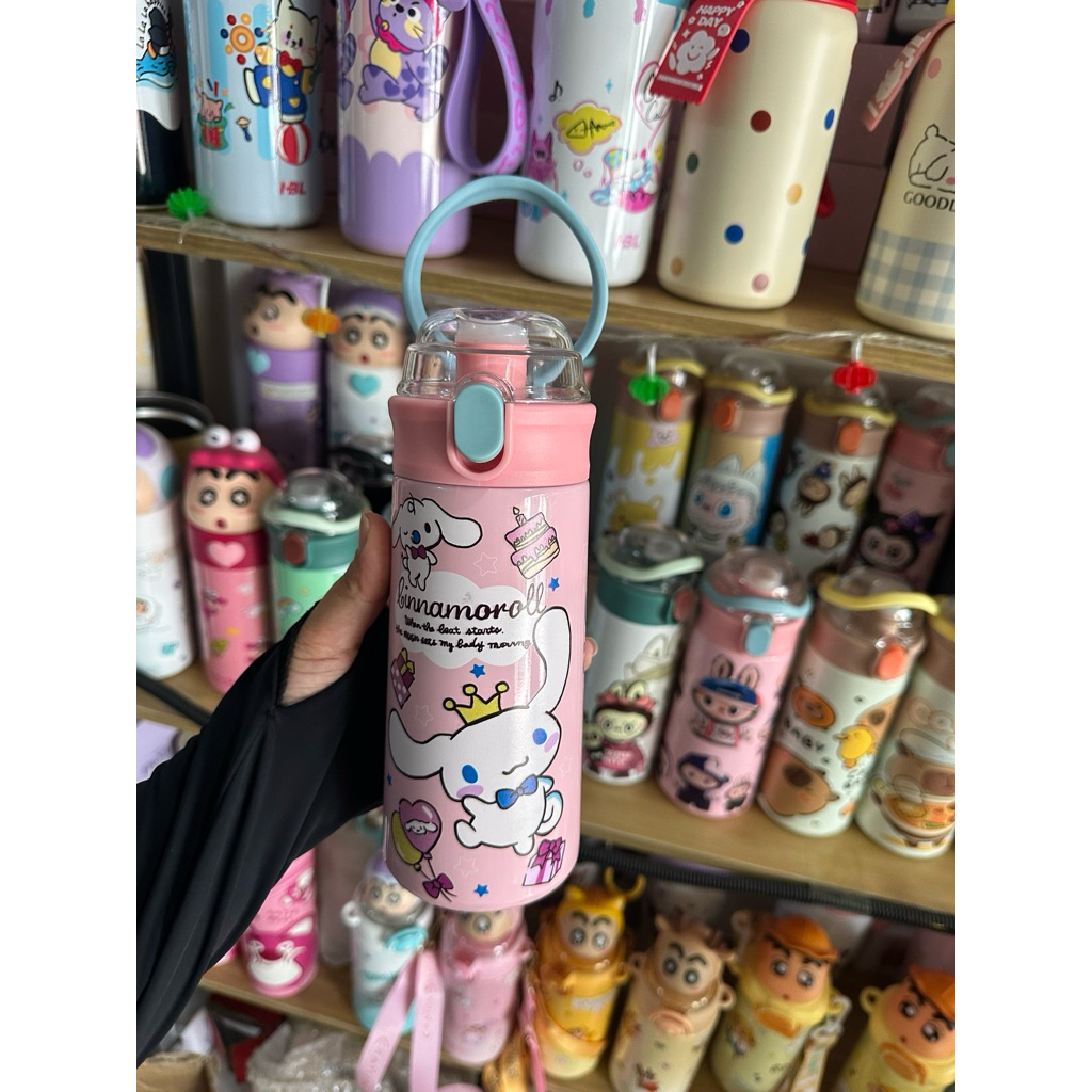 Bình Giữ Nhiệt Cho Bé Đi Học 500ml - Inox 304, Có Ống Hút, Tay Cầm Chống Rơi, Có Dây